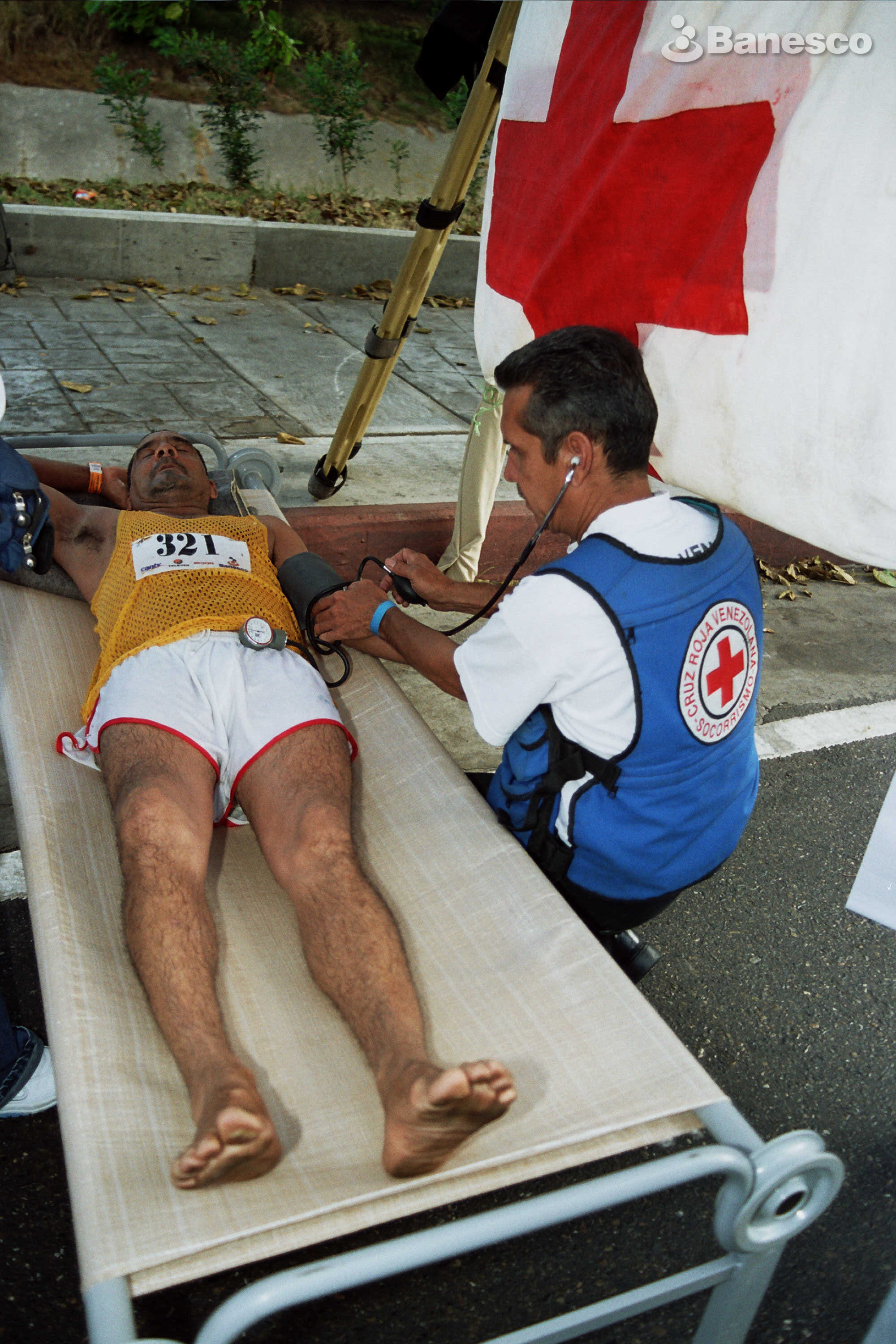Atleta siendo atendido por equipo de paramédicos de la Cruz Roja Venezolana