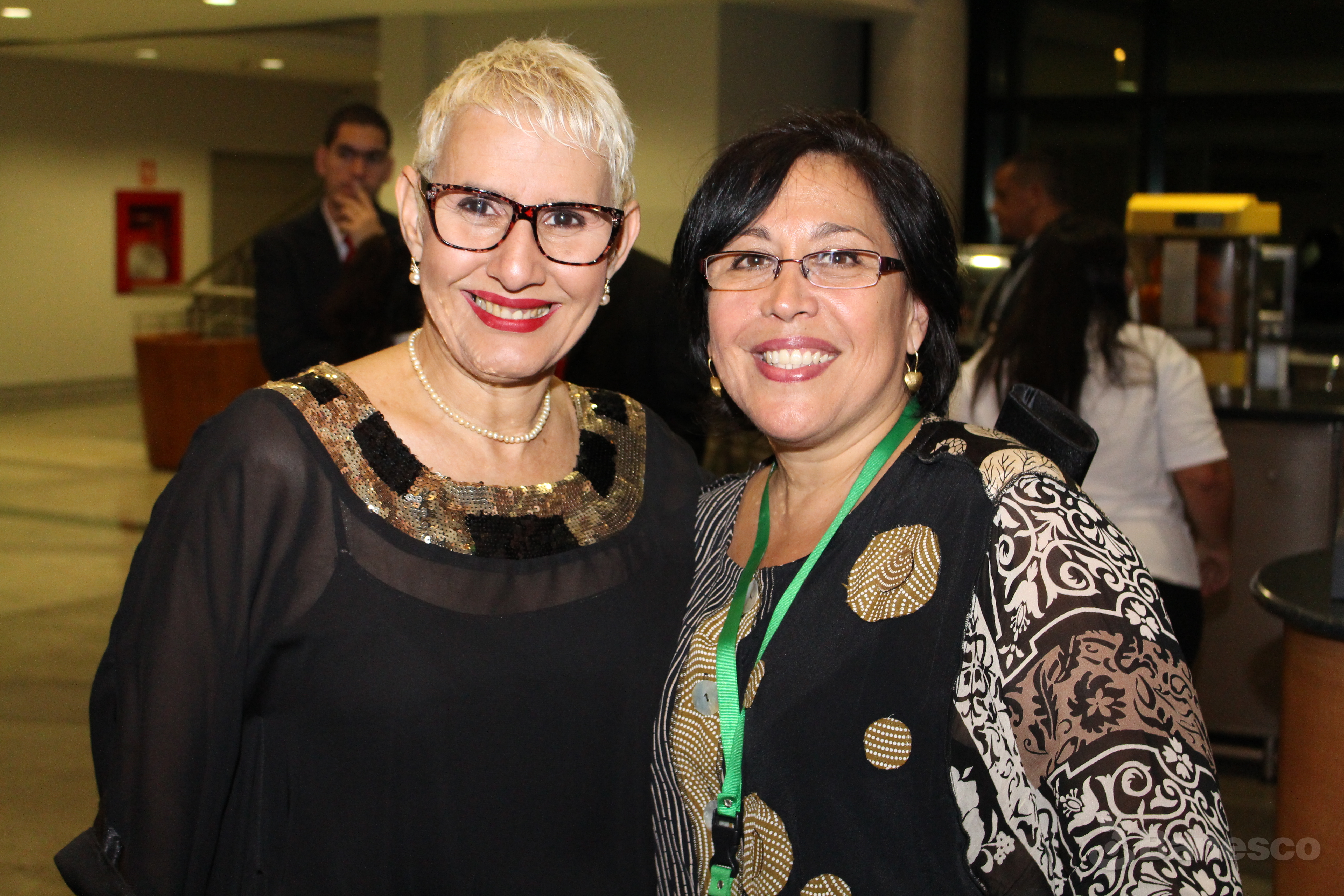 Ana Ríos y Lorena Labarca del equipo de Comunicaciones y Responsabilidad Social Empresarial de Banesco, durante el brindis con motivo de celebrarse la IV edición del premio "Empresario Banca Comunitaria".