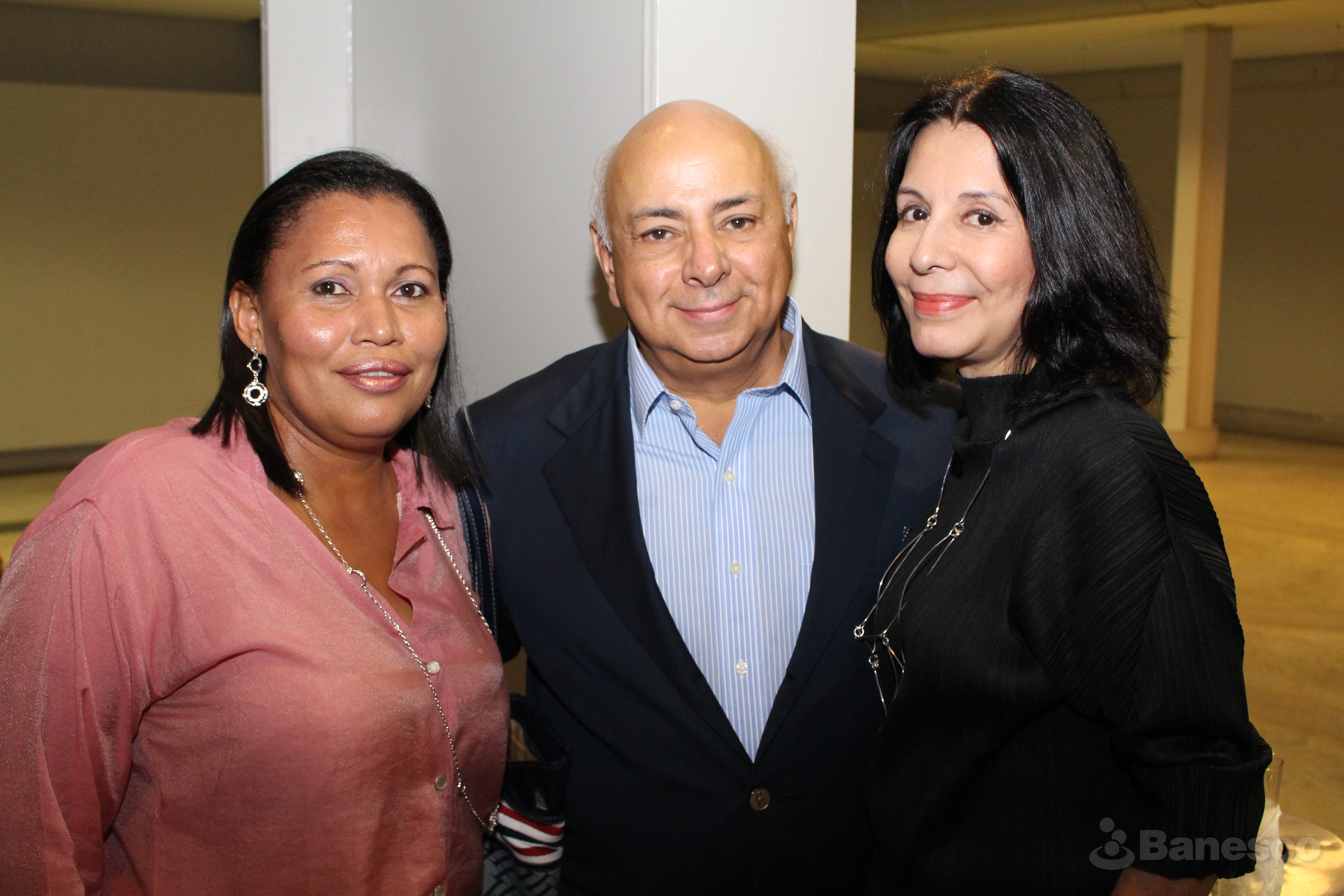 El reconocido periodista César Miguel Rondón junto a invitadas compartiendo en el brindis con motivo de la premiación "Empresario Banca Comunitaria", realizado en el pasillo central del piso 2 de Ciudad Banesco.