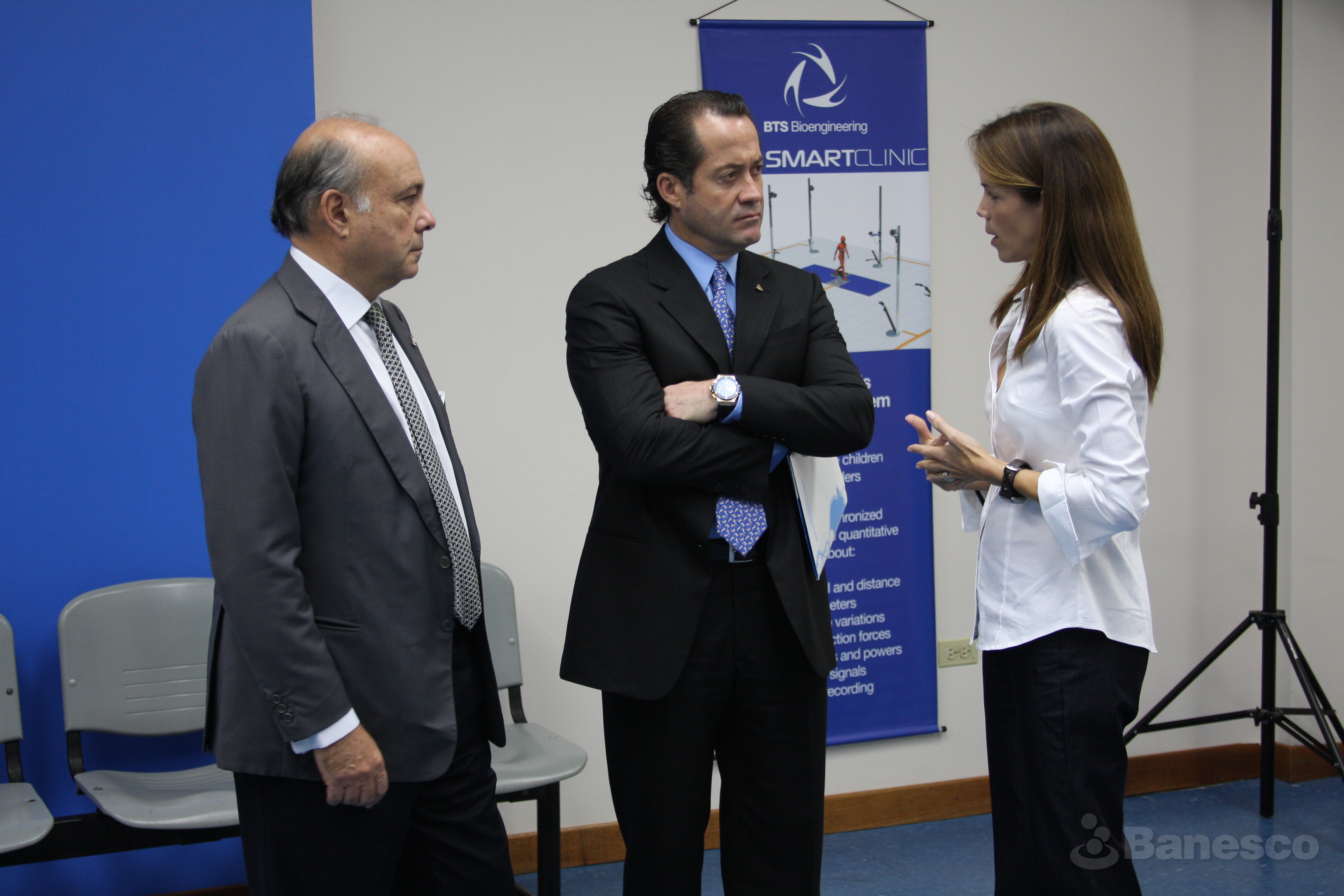 Eugenio Mendoza, presidente del Hospital Ortopédico Infantil, Andreína Vogeler Mendoza de Pérez, directora ejecutiva de La Fundación Venezolana contra la Parálisis Infantil (FVCLPI) conversan con Juan Carlos Escotet Rodríguez, presidente de Banesco, durante el recorrido realizado por las instalaciones del hospital.