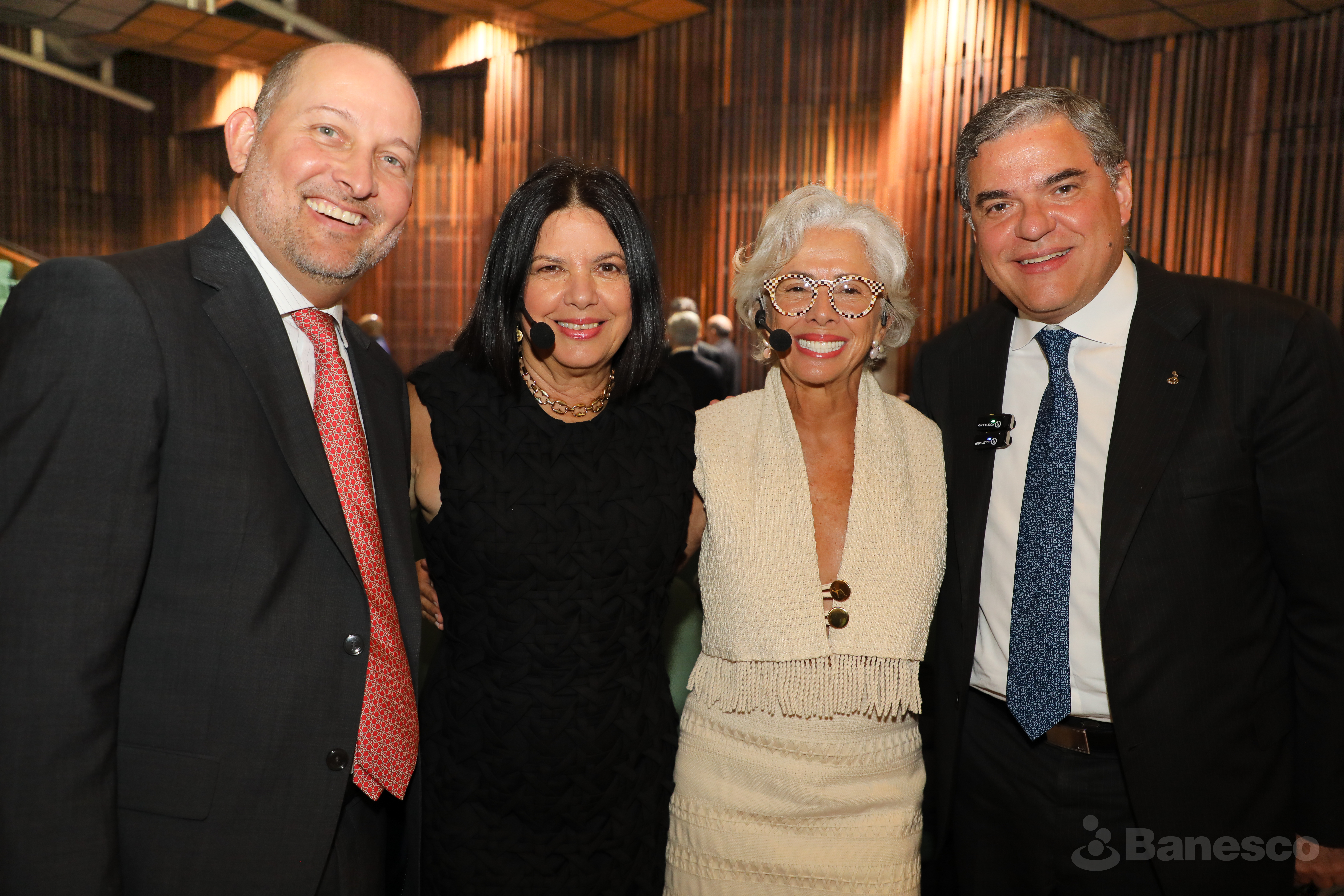 Las hermanas Quintero junto a Carlos Millán, presidente de Banesco y Marco Ortega, presidente de la junta directiva, durante la presentación de la quinta edición del libro "La criolla principal".