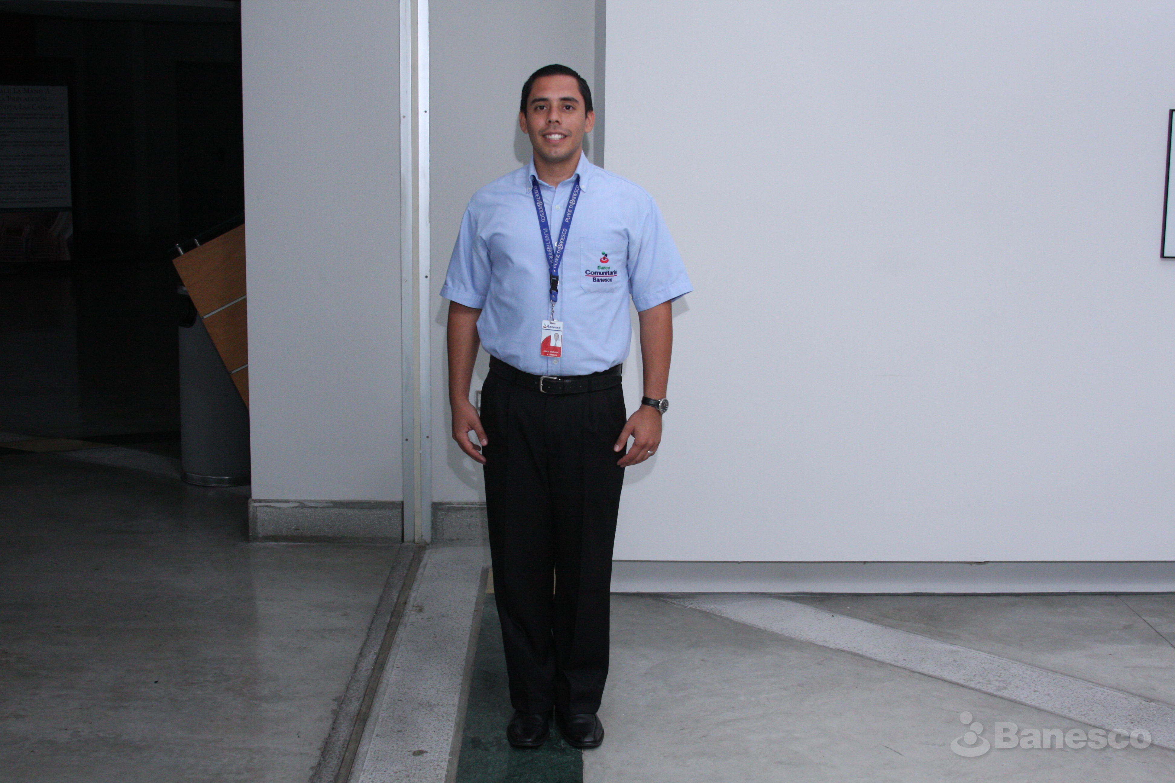 Ciudadano Banesco utilizando una camisa de la Banca Comunitaria de Banesco en color azul.
