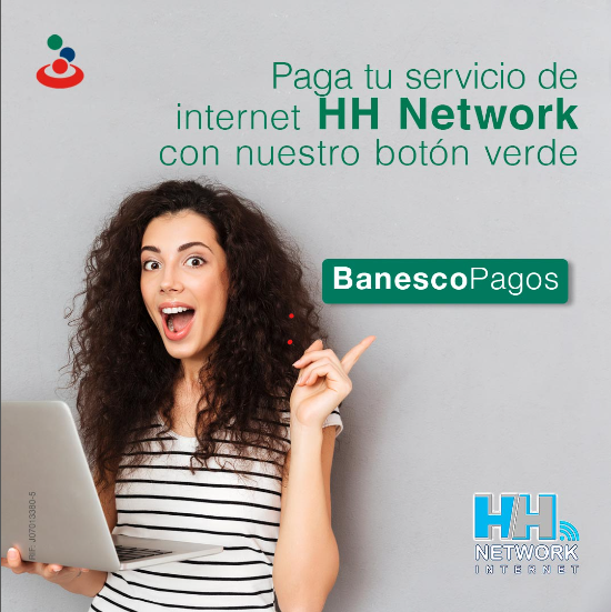 Paga fácil tu servicio de internet @hhnetwork_t, solo ubica el botón #BanescoPagos en su portal web, haz clic y completa los datos.