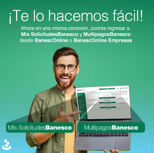 Porque siempre pensamos en ti y en tu comodidad, haz tus consultas, requerimientos y operaciones en una misma conexión. Ahora podrás ingresar a Mis SolicitudesBanesco y #MultipagosBanesco desde #BanescOnline o BanescOnline Empresas.