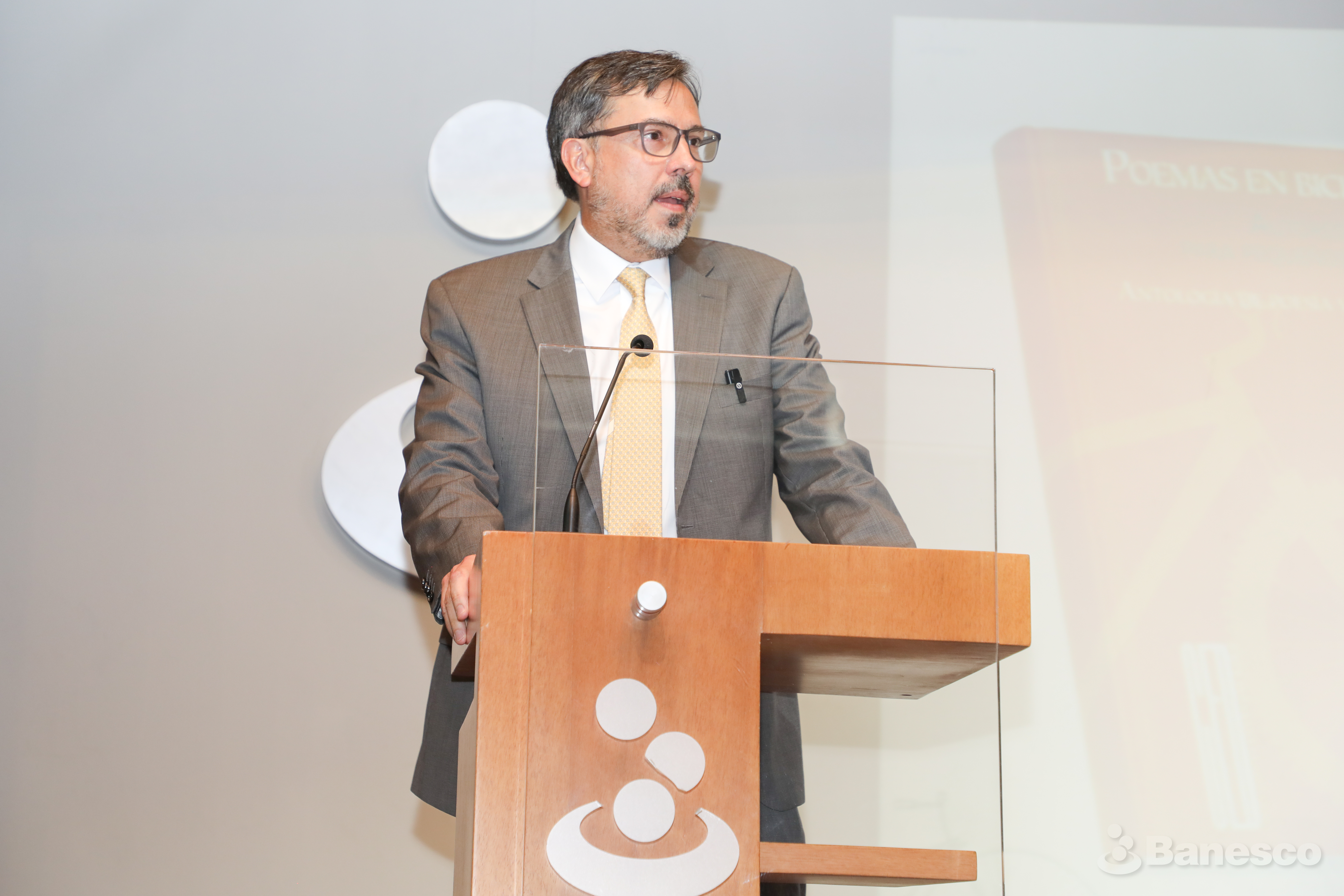 Palabras de Marlo Ovalles presidente de Fundación La Poeteca, durante la presentación del libro "Poemas en bicicleta. Antología de poesía venezolana", evento realizado en las instalaciones de Ciudad Banesco.