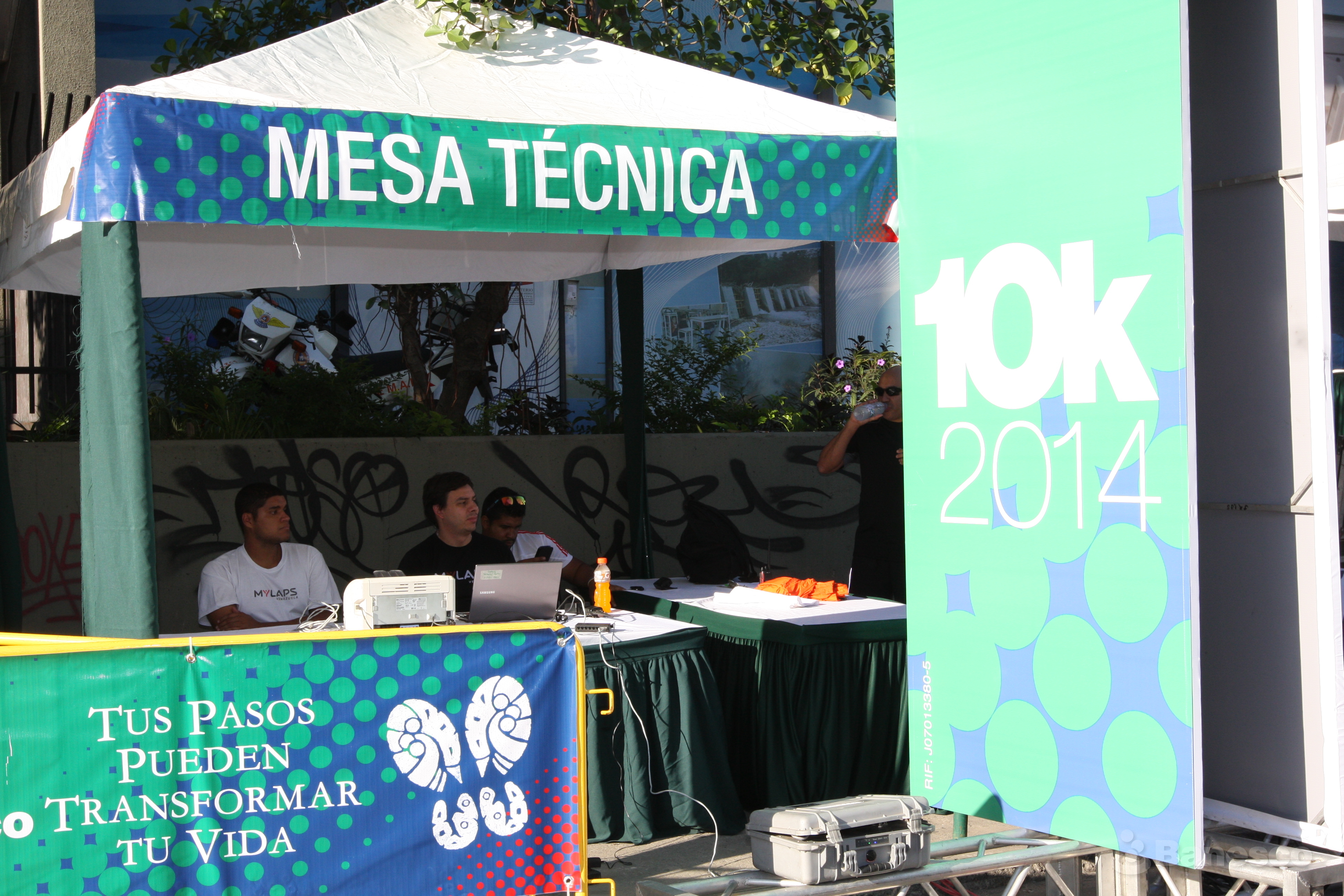 La mesa técnica dispuesta para llevar el control de los tiempos y récord de los participantes de la carrera 10k y caminata 5k en las diferentes categorías del maratón.