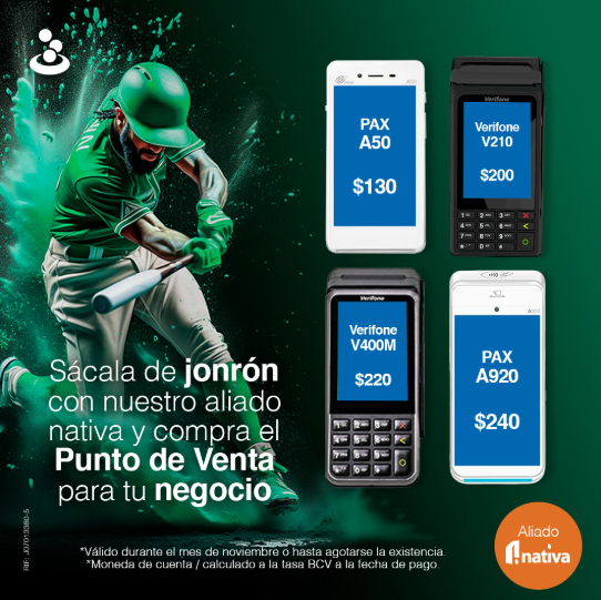 Nuestro aliado @nativapagos te ofrece una amplia variedad de modelos para que elijas el que mejor se adapte a tus necesidades y presupuesto PAX A50 en $130, Verifone V210 en $200, Verifone V400M en $ 220, PAX A920 en $240.