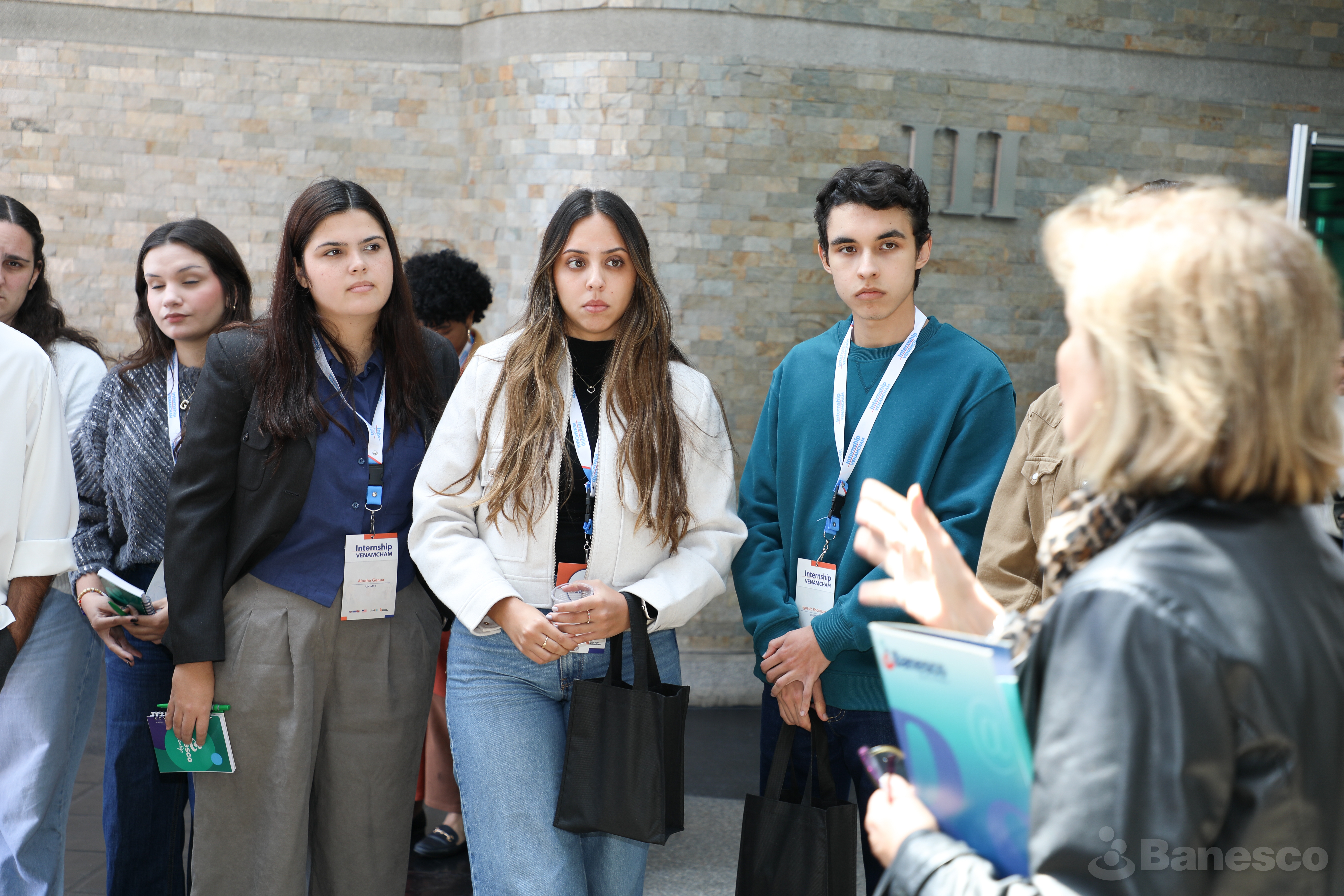 Belén López, Gerente de Eventos y Protocolo, conversando y aclarando dudas a los estudiantes de la Universidad Católica Andrés Bello y la Universidad Metropolitana de Caracas durante el recorrido realizado por las instalaciones de Ciudad Banesco.