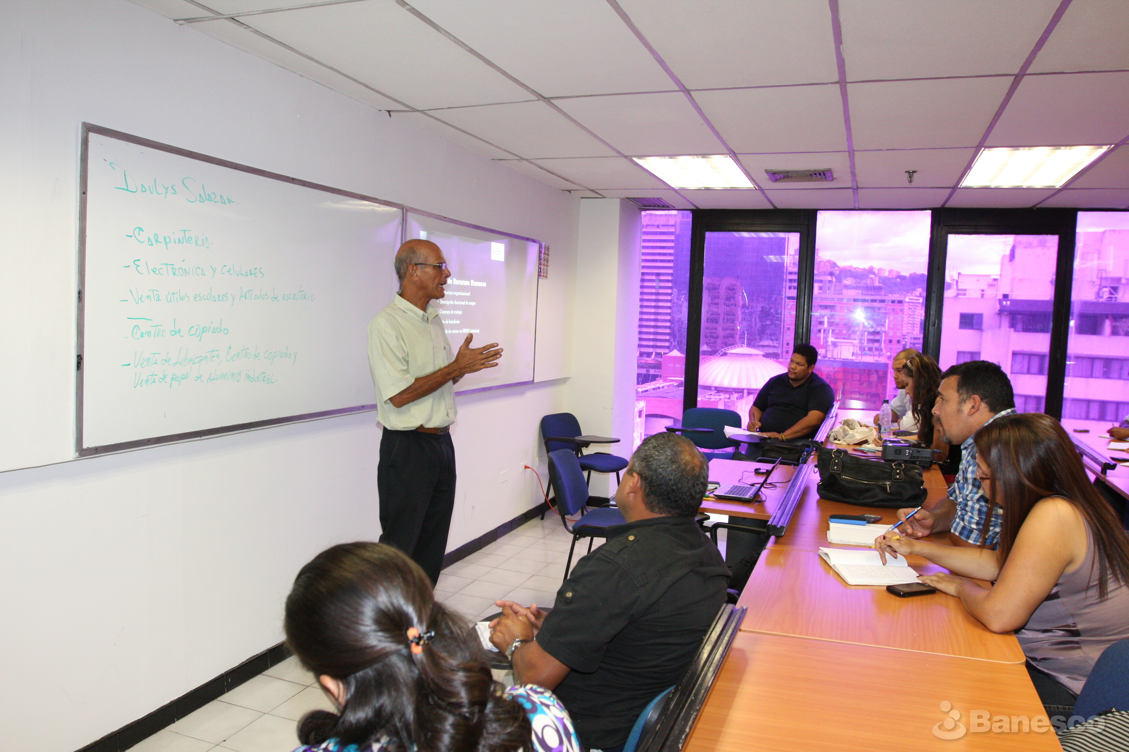 Instructor dicta clases a los emprendedores participantes en el Programa de Formación de Microempresarios dictado en alianza con el Instituto Universitario de Gerencia y Tecnología (IUGT) para brindar conocimiento y herramientas a los emprendedores venezolanos.