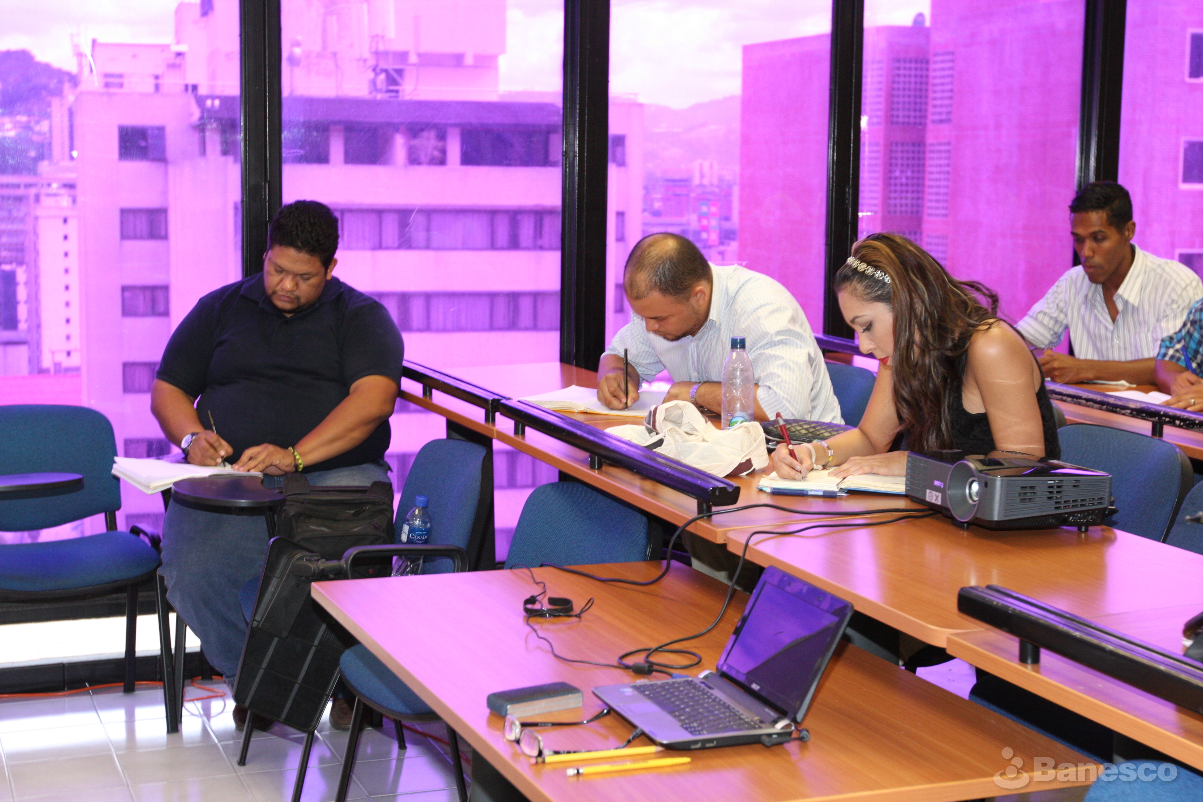 Participantes recibiendo clases en el marco del Programa de Formación de Microempresarios, llevado a cabo por facilitadores de Banesco en alianza con el Instituto Universitario de Gerencia y Tecnología (IUGT), para los emprendedores venezolanos.