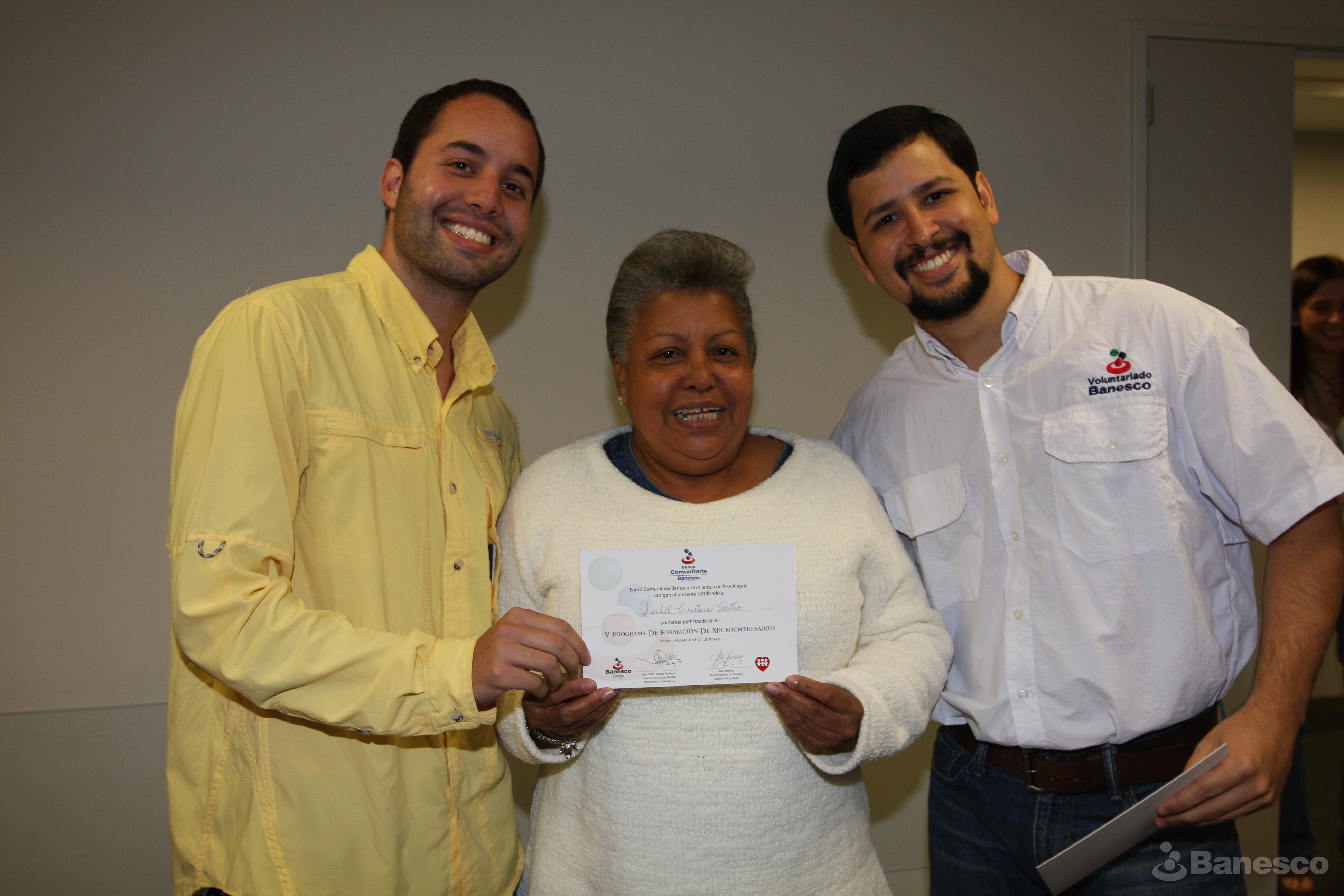 Isabel Cristina Castro, recibiendo certificado por haber culminado el V Programa de Formación de Microempresarios, realizado por Banca Comunitaria Banesco en alianza con Fe y Alegría.