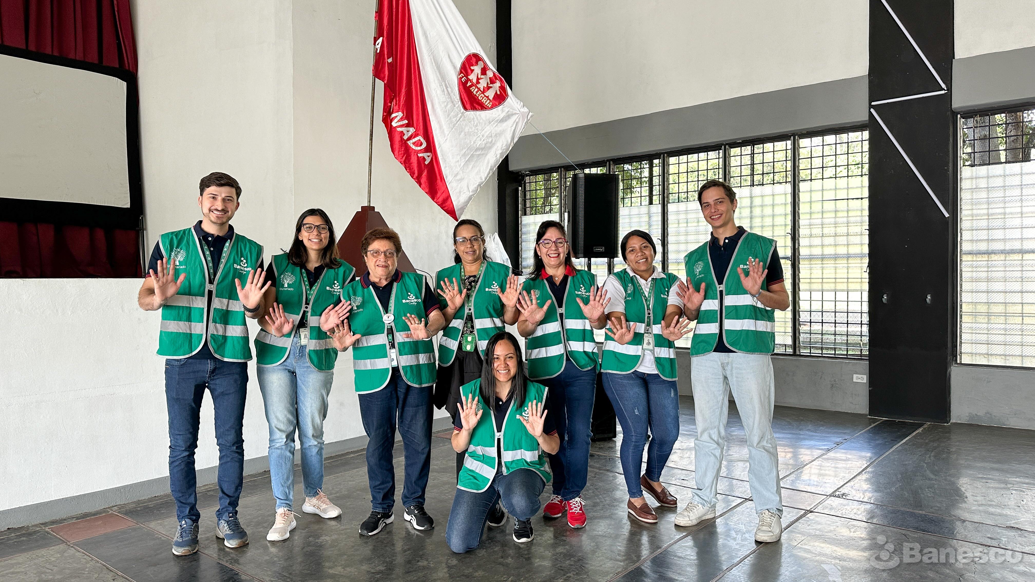 Voluntarios Banesco durante la visita realizada a la Escuela Técnica Fe y Alegría La Rinconada, actividad llevada a cabo para promover una charla titulada "Hablemos del Bullying y las Redes Sociales".