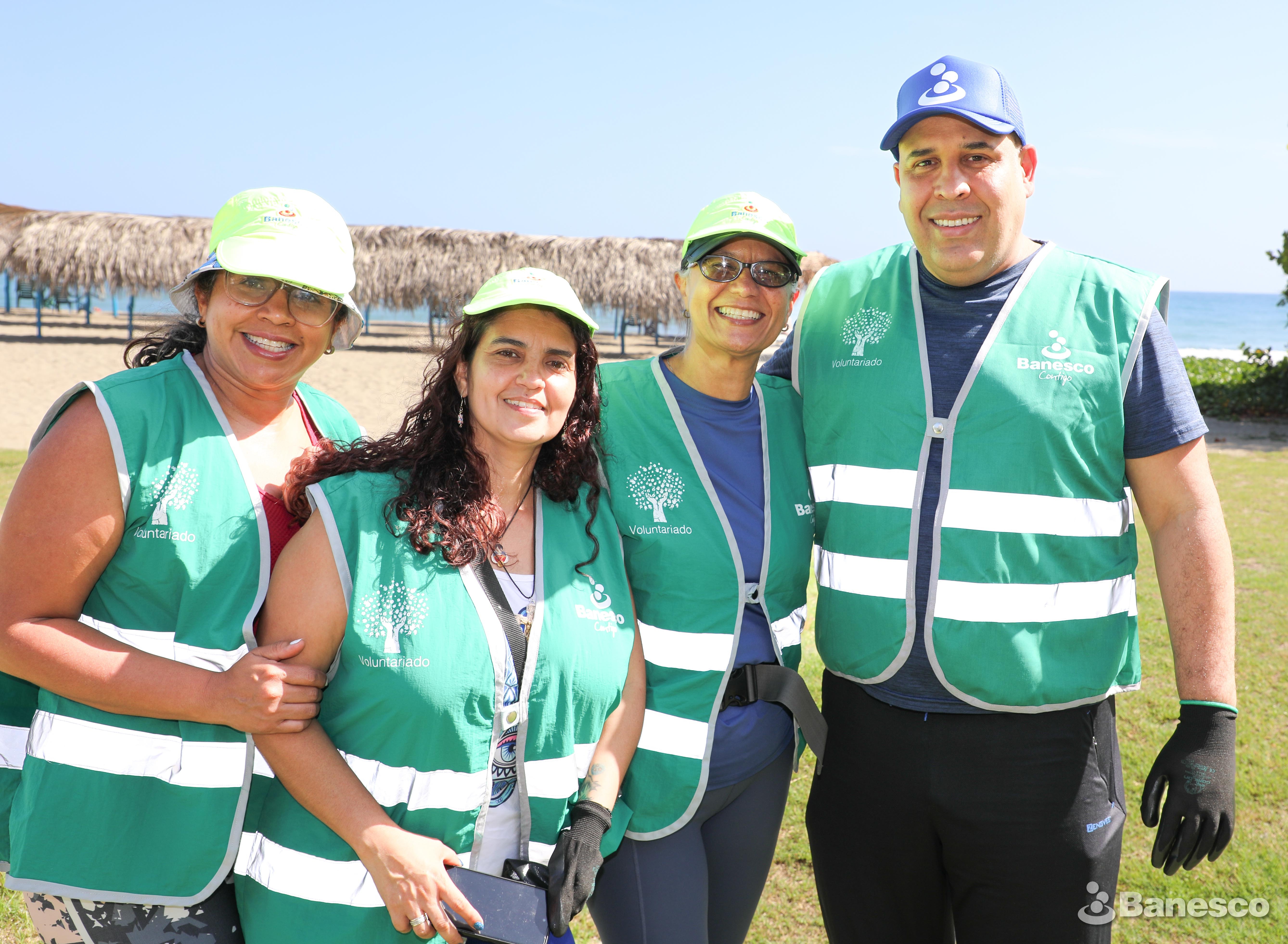 Chyyn Lujano, Vp. ejecutivo de Capital Humano junto a Voluntarias Banesco, durante la 2da. jornada de limpieza de playas, realizada a propósito de celebrarse el "Día Mundial de las Playas" en el mes de septiembre. Con esta iniciativa se busca sensibilizar a la comunidad sobre la importancia en el cuidado del medio ambiente.