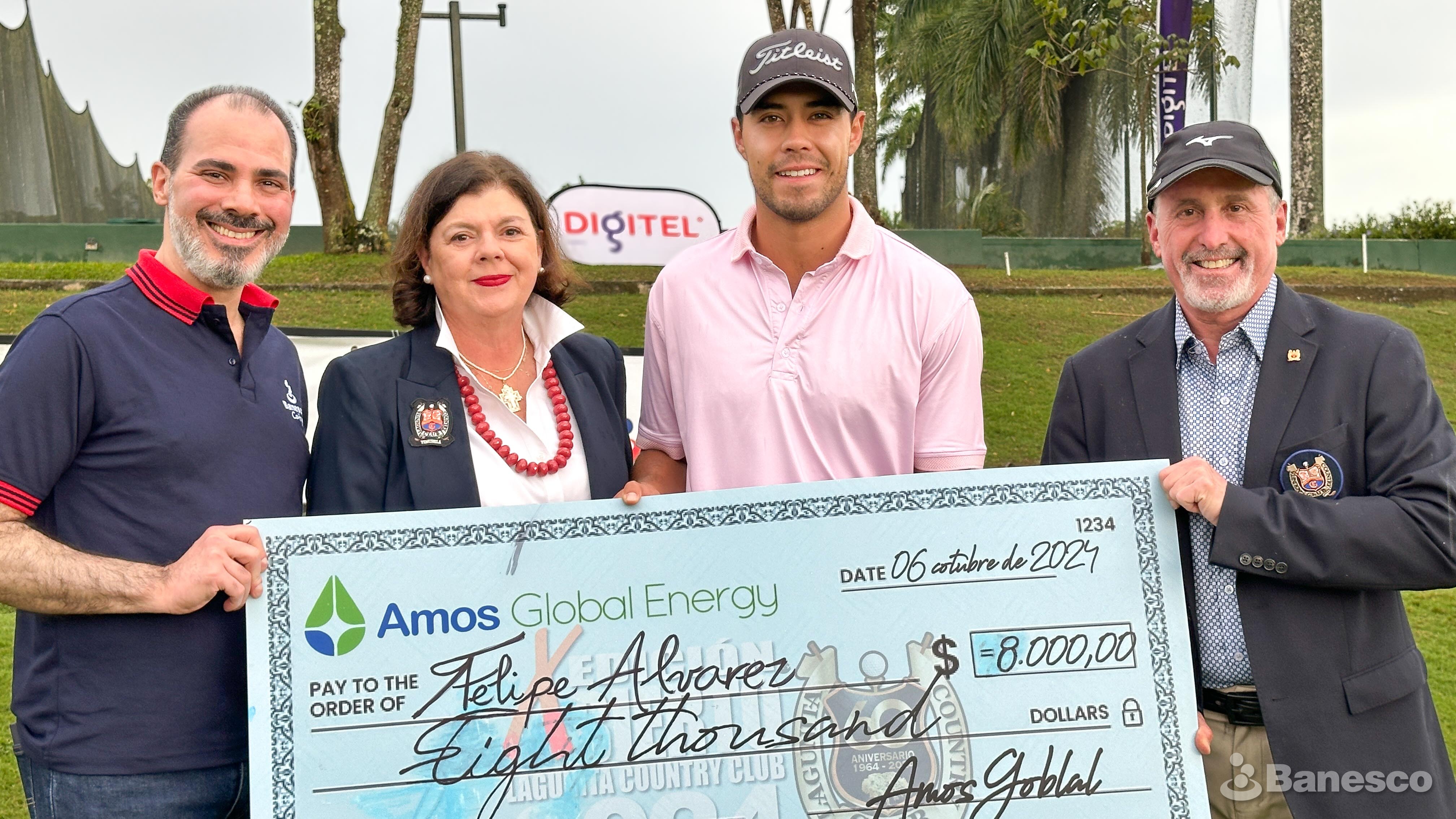 Felipe Álvarez, recibe cheque ganador del primer lugar en la X edición del Abierto Lagunita Country Club - Copa Amos Global Energy, uno de los torneos de golf más importantes de Venezuela, evento avalado por la Federación Venezolana de Golf y respaldada por la PGA Venezuela.