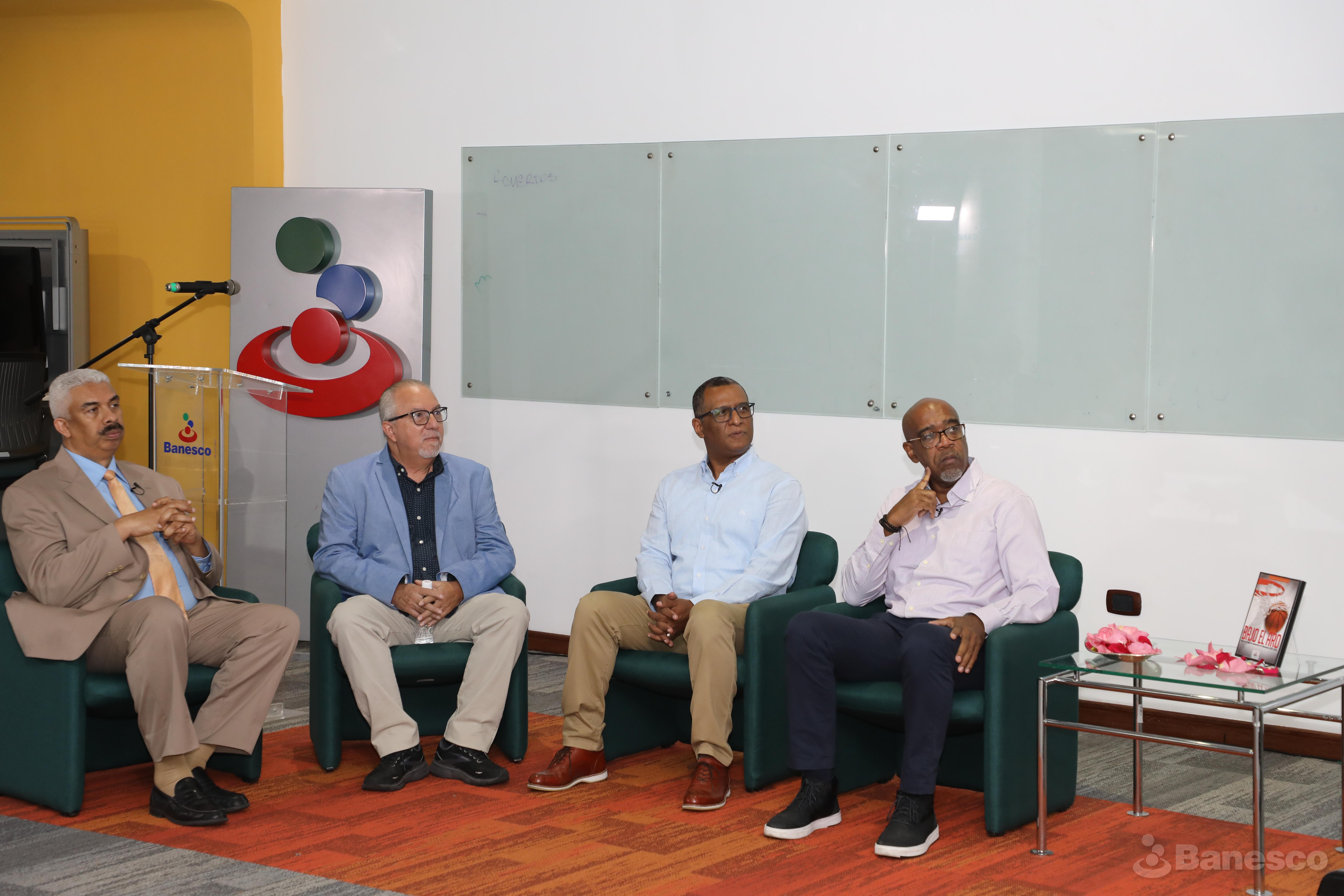Alvis Cedeño, Carlos Figueroa Ruiz, Williams Brito y Nelson “Kako” Solórzano, conversando sobre historias del baloncesto en Venezuela y anécdotas durante la producción del libro "Bajo el Aro".