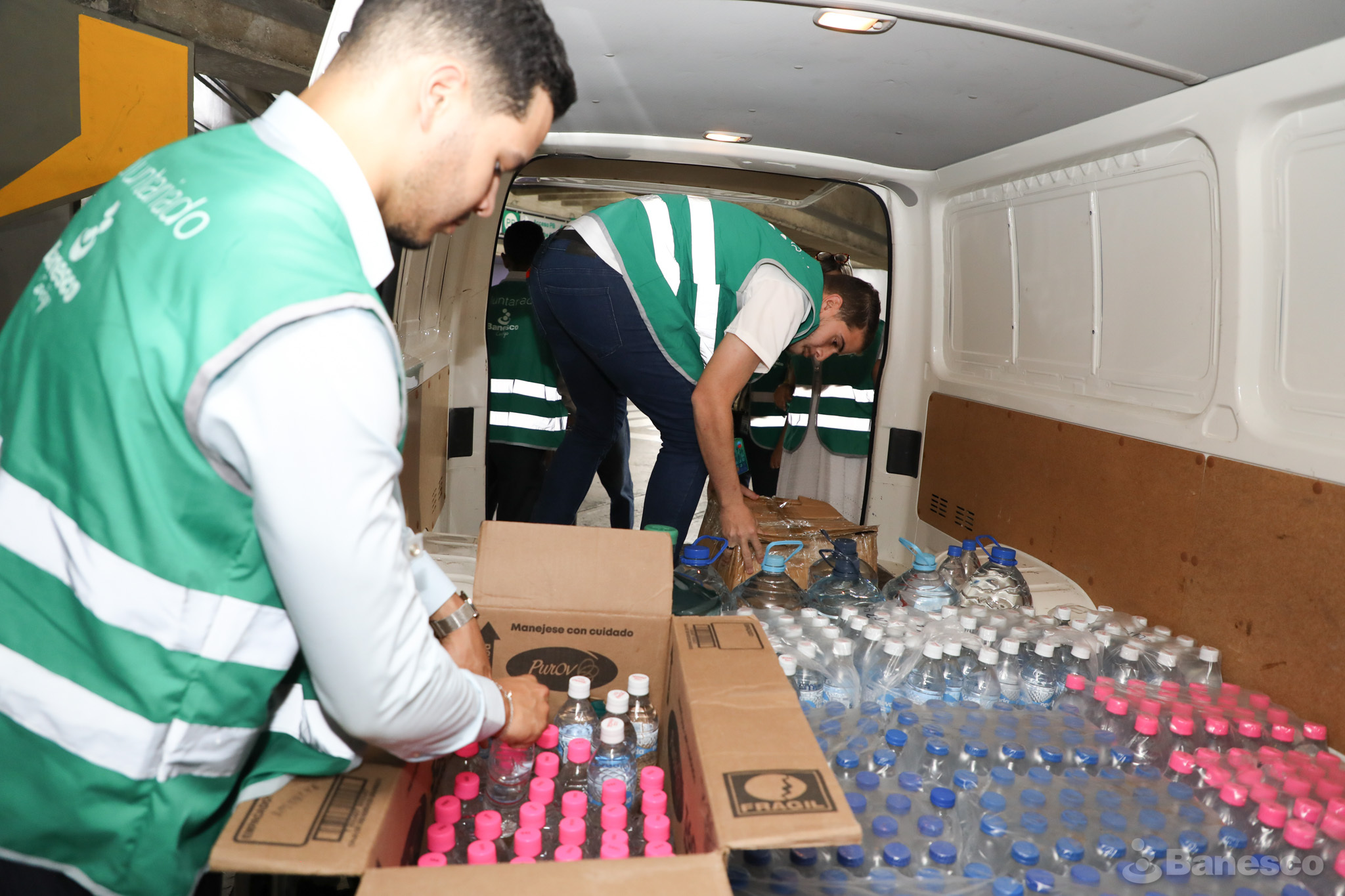 Jeshua Merchan y Brayan Brieva encargados de preparar el donativo que será entregado a las personas afectadas por las fuertes lluvias ocurridas en Cumanacoa en el mes de julio.