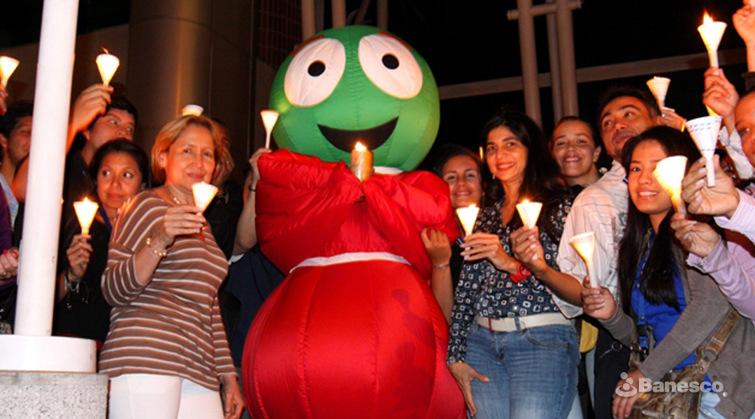 Baneskin y Ciudadanos Banesco, durante la grabación del video por la La hora del Planeta en los espacios de Ciudad Banesco.