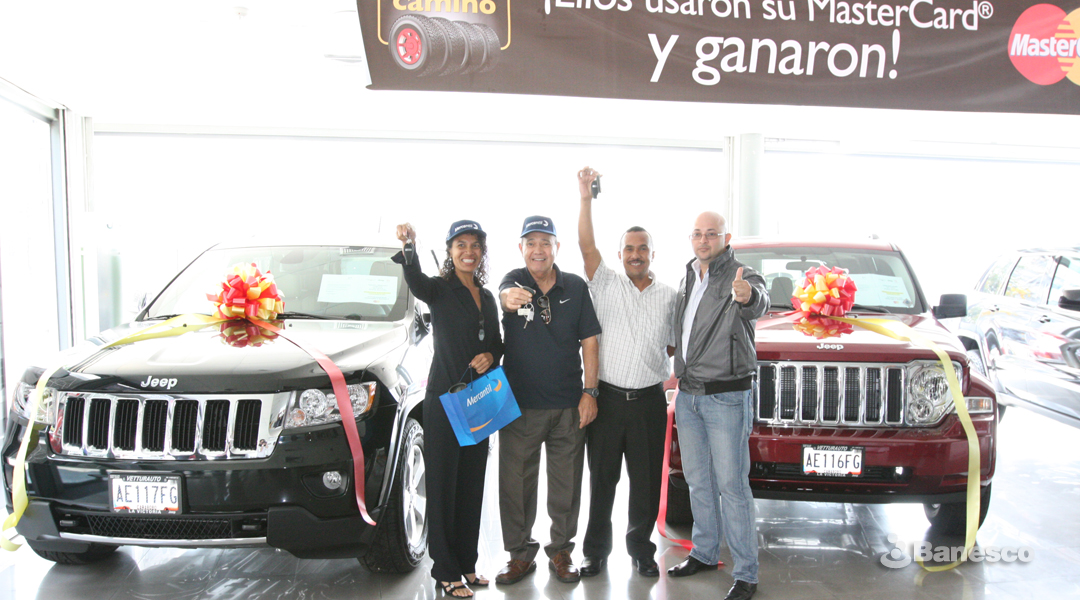 Ganadores del Banco Mercantil y Ganadores de Banesco, en la entrega de premios de la Promoción “Tu suerte está en camino”, realizada junto a MasterCard.
