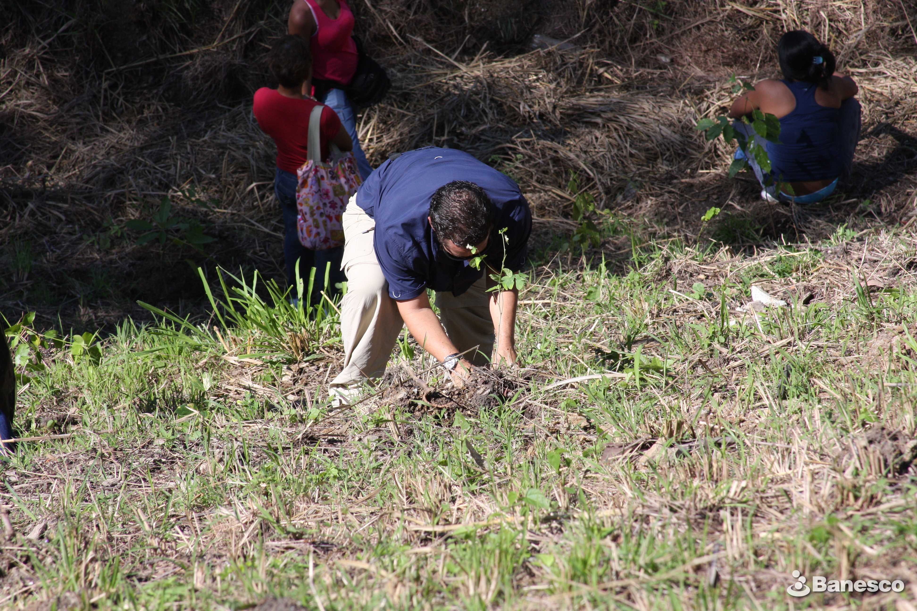 Voluntario Banesco plantando un árbol durante la "Jornada de Arborización", actividad realizada en el Parque Nacional Guaraira Repano, sector Cachimbo de la ciudad de Caracas.