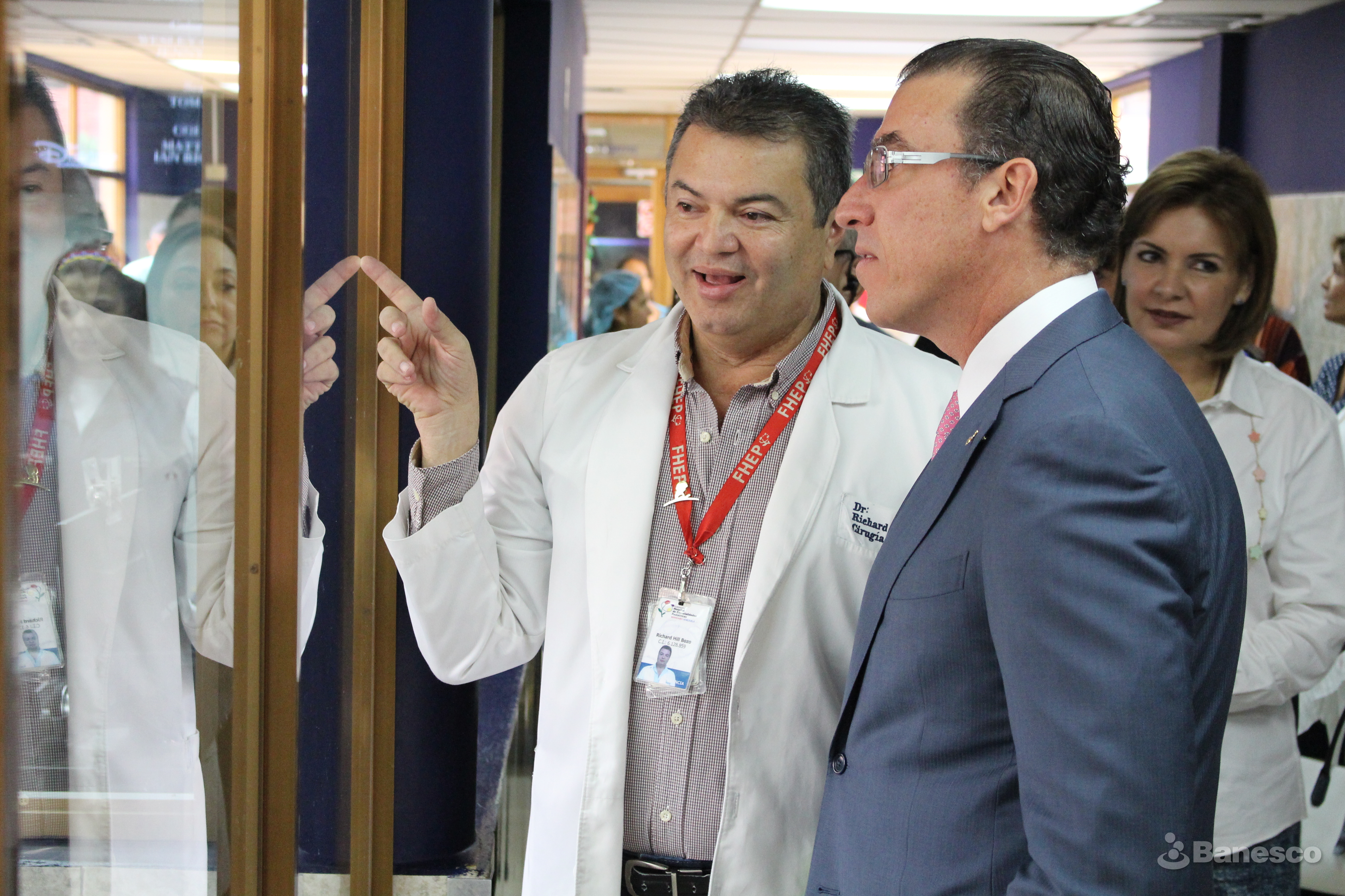 Richard Hill, presidente de la Fundación Hospital de Especialidades Pediátricas junto a Miguel Ángel Marcano, presidente ejecutivo de Banesco, durante el recorrido por las instalaciones del hospital con motivo de la inauguración de la ampliación de la sala de espera de la unidad de oncología.