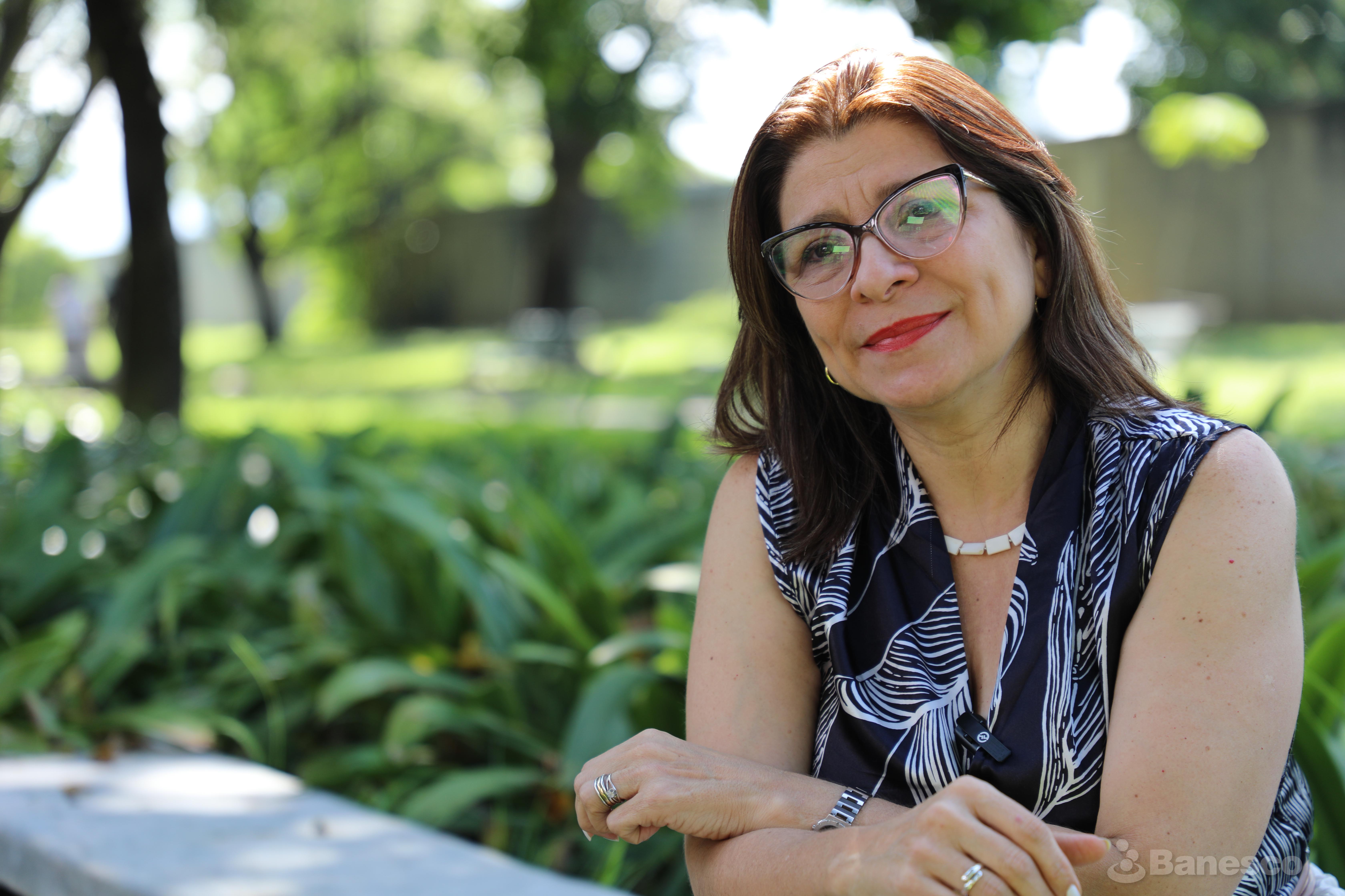Alicia Montero, compiladora del libro "Poemas en bicicleta. Antología de poesía venezolana", presente en el Parque Aruflo durante la grabación del vídeo de presentación de la obra.