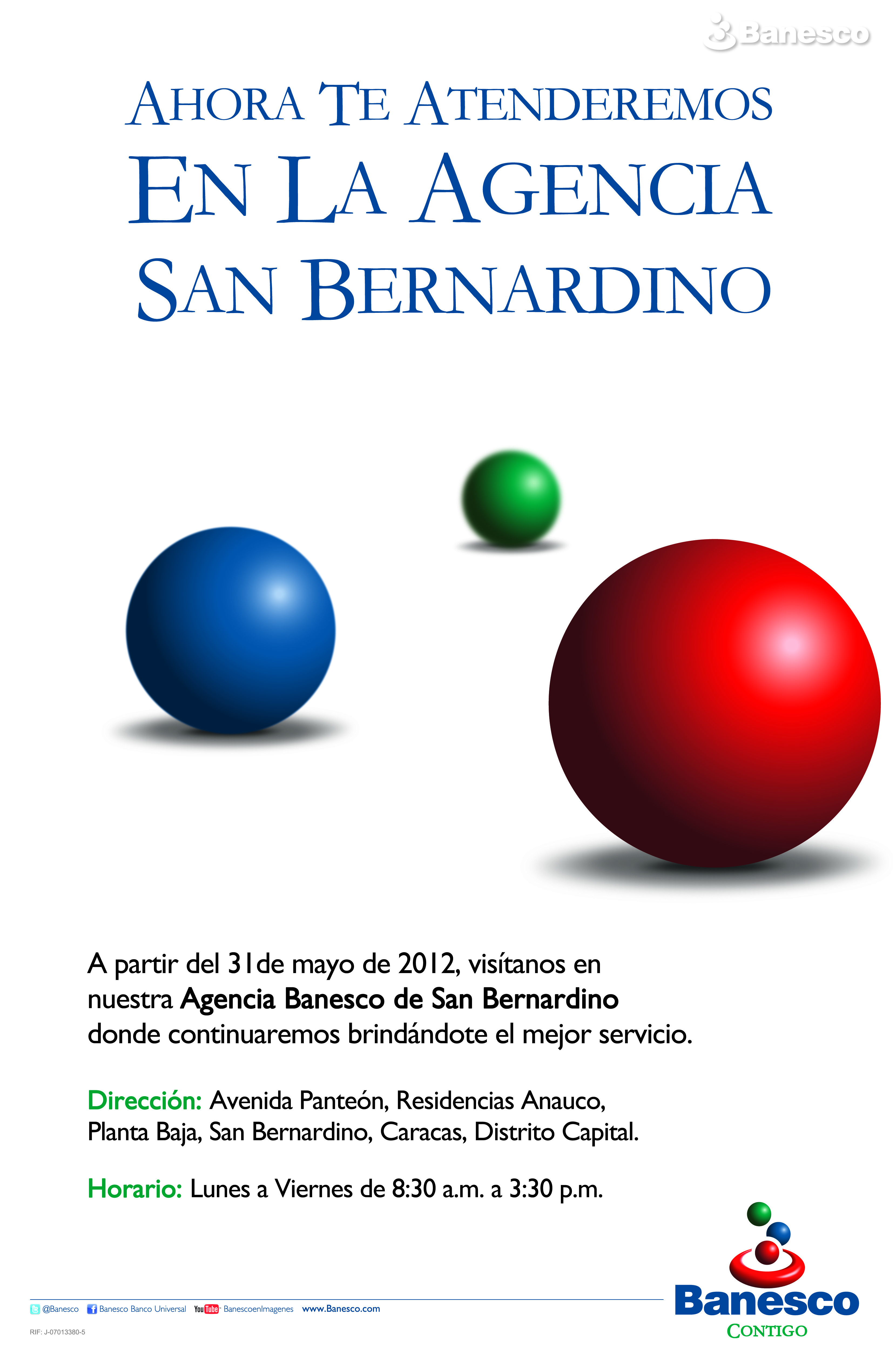 Afiche para anunciar la apertura de la nueva agencia San Bernardino, Caracas, Distrito Capital.