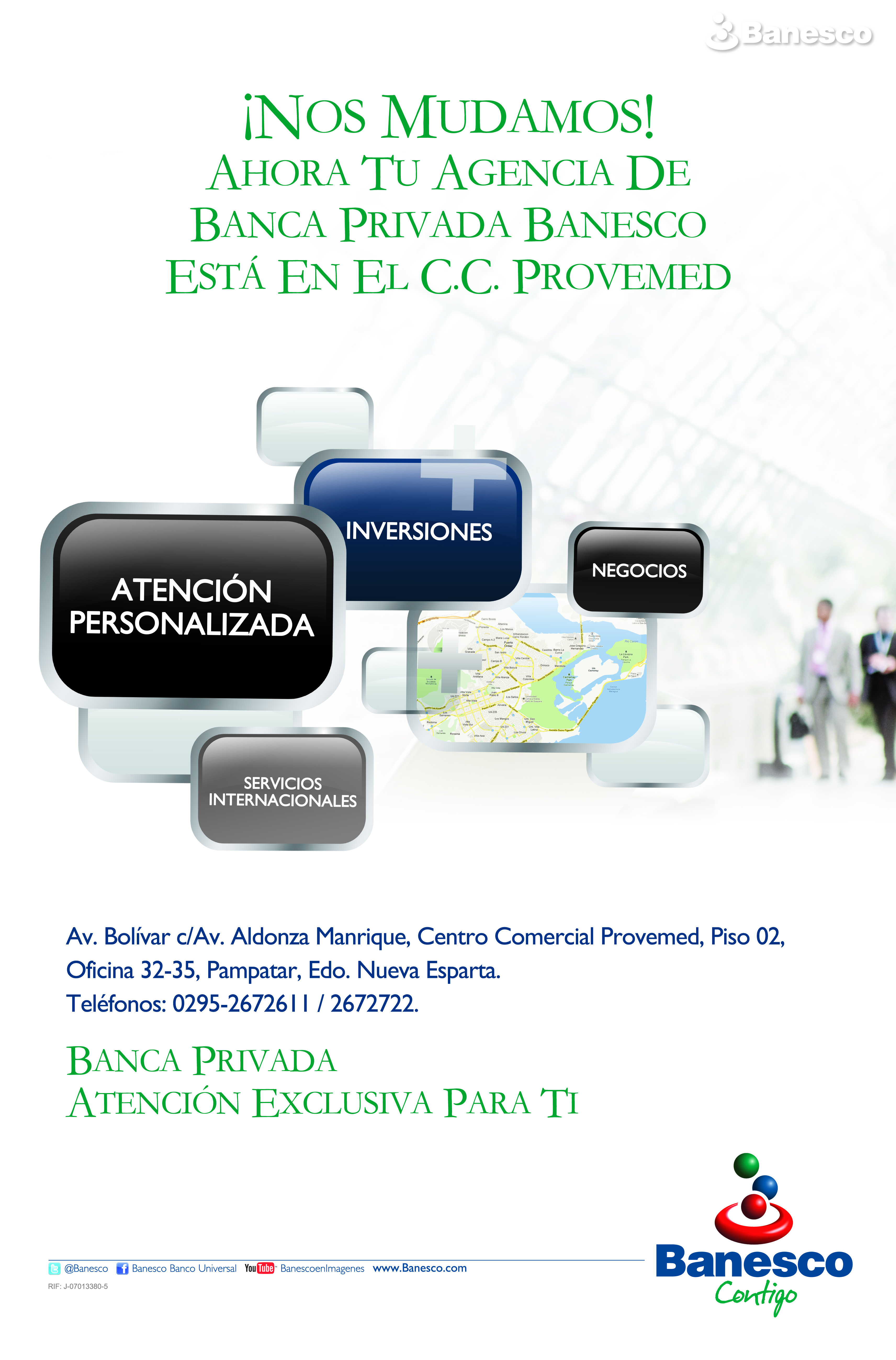 Afiche para anunciar la apertura de la nueva agencia C.C. Provemed, Pampatar, estado Nueva Esparta.