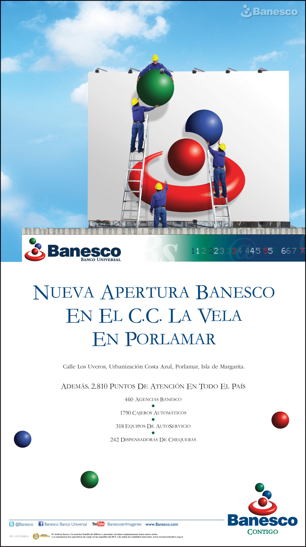 Afiche para anunciar la apertura de la nueva agencia C.C. La Vela, Porlamar, estado Nueva Esparta.