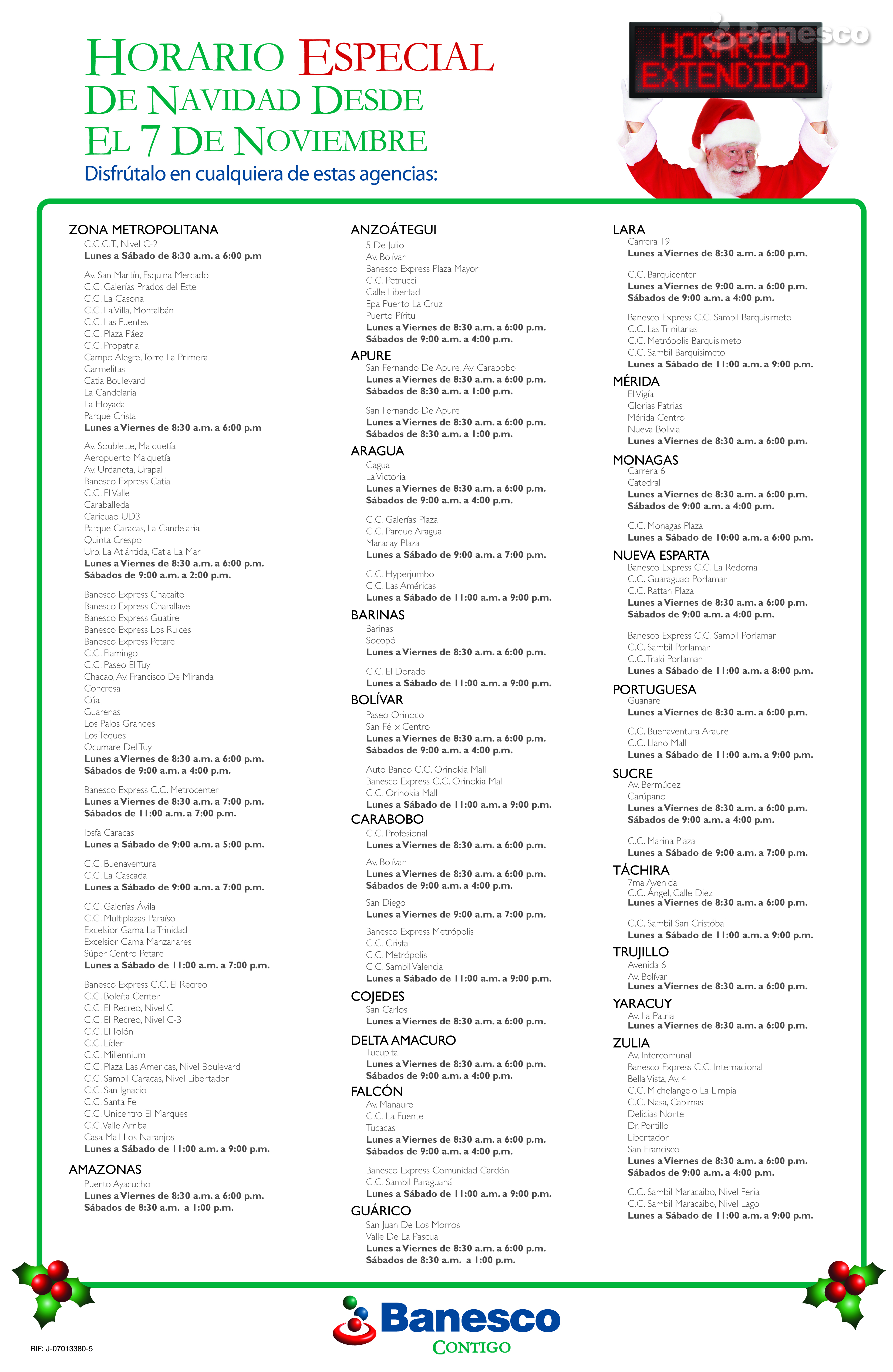 Horario especial de navidad implementado desde el mes de noviembre hasta el mes de diciembre.
