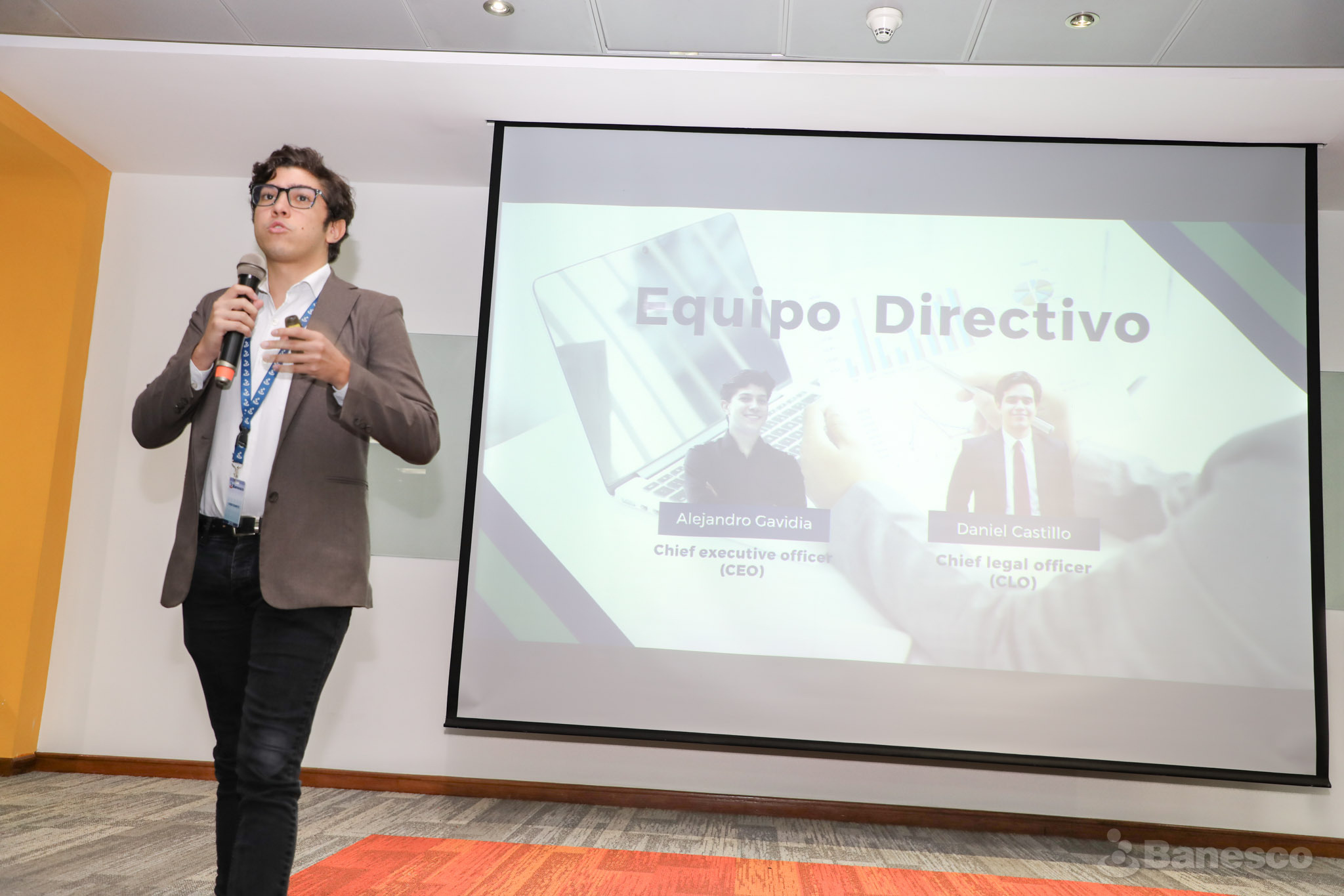 Alejandro Gavidia, presentando su idea durante la 3ra edición del Reto Banesco 2025. El concurso está orientado principalmente en el desarrollo de servicios, software o sistemas que mejoren la experiencia de los usuarios.
