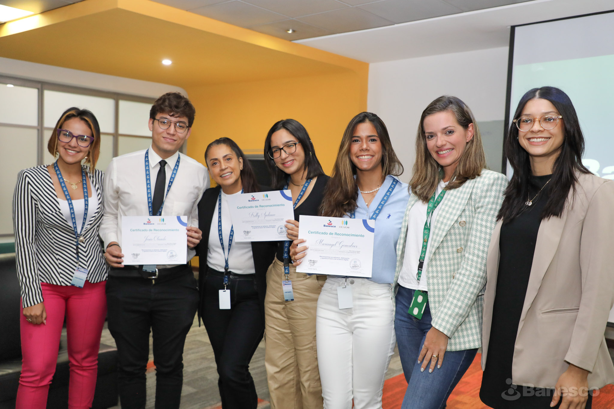 Reconocimiento a estudiantes de la Universidad Católica Andrés Bello (UCAB) al finalizar las presentaciones de la tercera edición del "Reto Banesco", realizado en las instalaciones de Ciudad Banesco.
