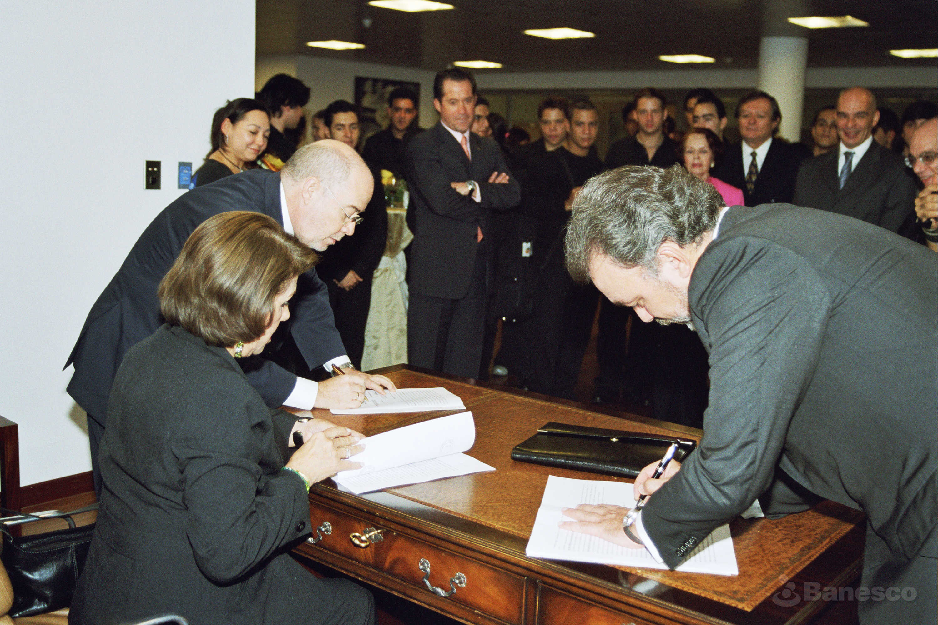 Banesco y FESNOJIV firman en el año 2004 el primer convenio de apoyo entre ambas instituciones con la participación del maestro José Antonio Abreu, Juan Carlos Escotet, Luis Xavier Luján e invitados especiales en el ámbito musical. La alianza se enmarca dentro del programa de Responsabilidad Social Empresarial de Banesco, enfocado a la educación.