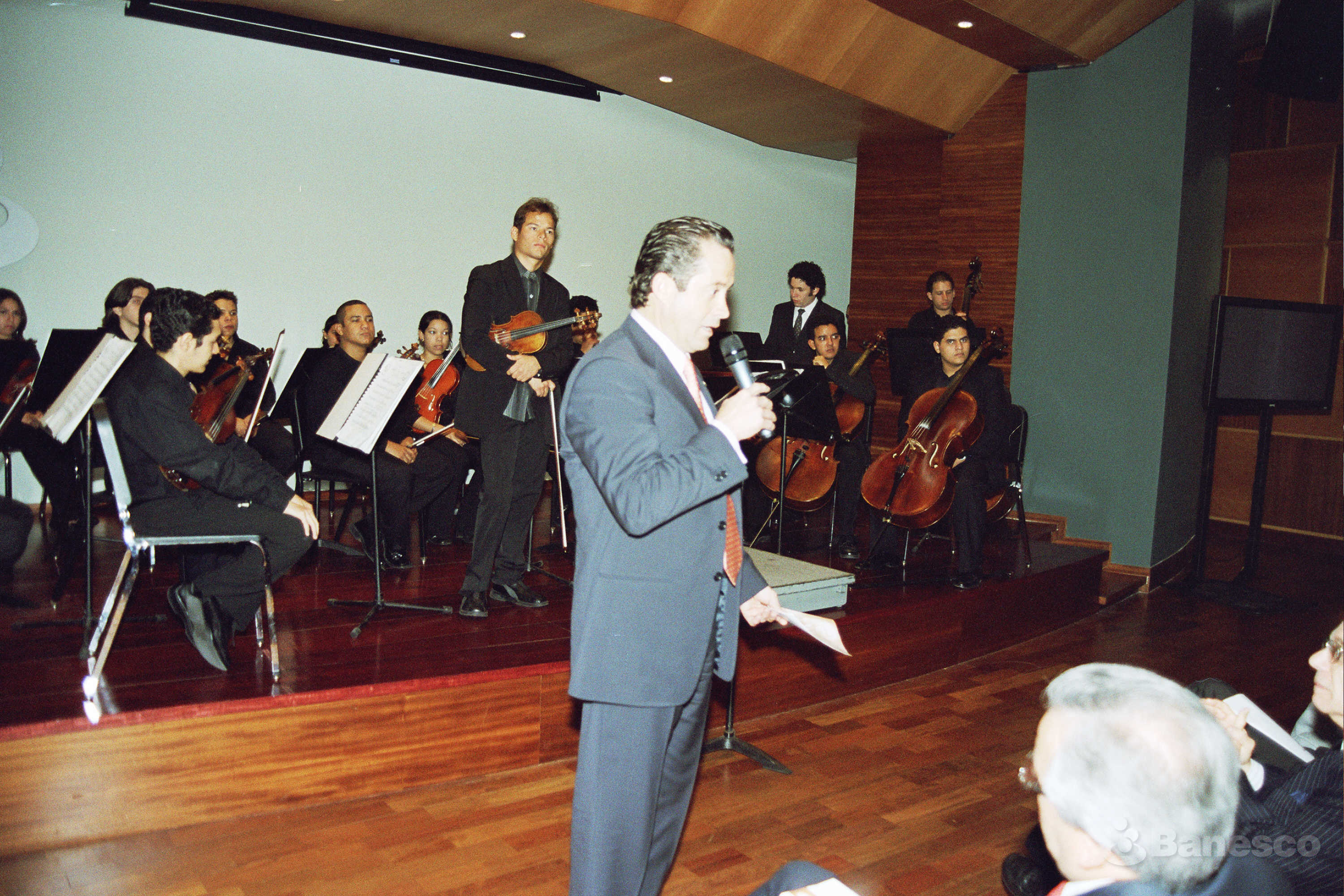 Juan Carlos Escotet dirige unas emotivas palabras a los asistentes del concierto Vivaldi, realizado en el auditorio Fernando Crespo Suñer para celebrar la firma del convenio entre Banesco y la Fundación del Estado para el Sistema Nacional de las Orquestas Juveniles e Infantiles de Venezuela (FESNOJIV).