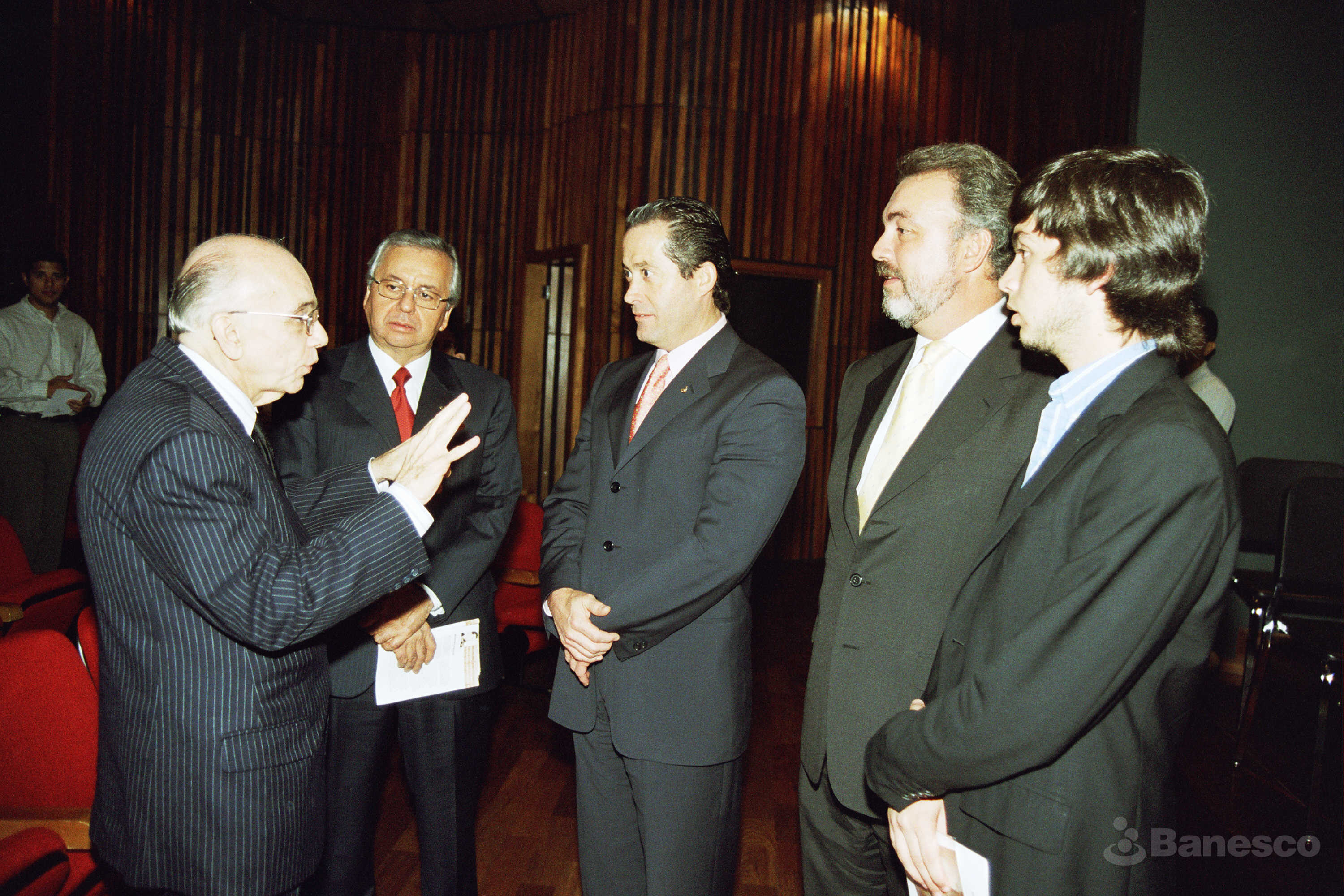 El maestro José Antonio Abreu, conversa con los directivos de Banesco al finalizar el concierto realizado con motivo de celebrar la firma del convenio entre Banesco y la Fundación del Estado para el Sistema Nacional de las Orquestas Juveniles e Infantiles de Venezuela (FESNOJIV).