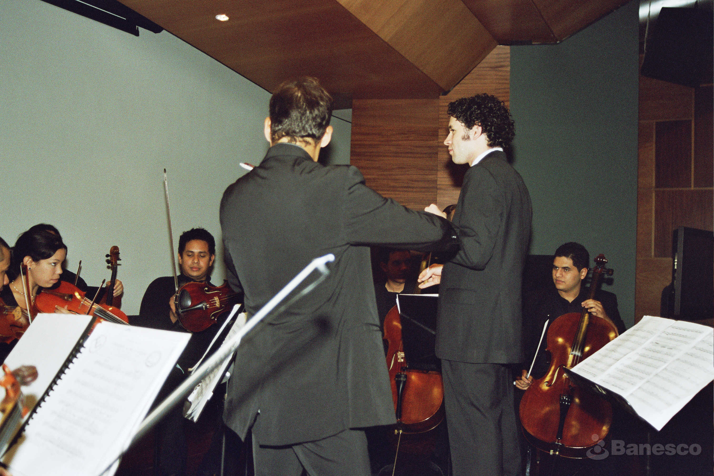 Gustavo Dudamel, dirige el concierto Vivaldi realizado en el auditorio Fernando Crespo Suñer de la institución bancaria en el marco de la firma del convenio entre Banesco y FESNOJIV.