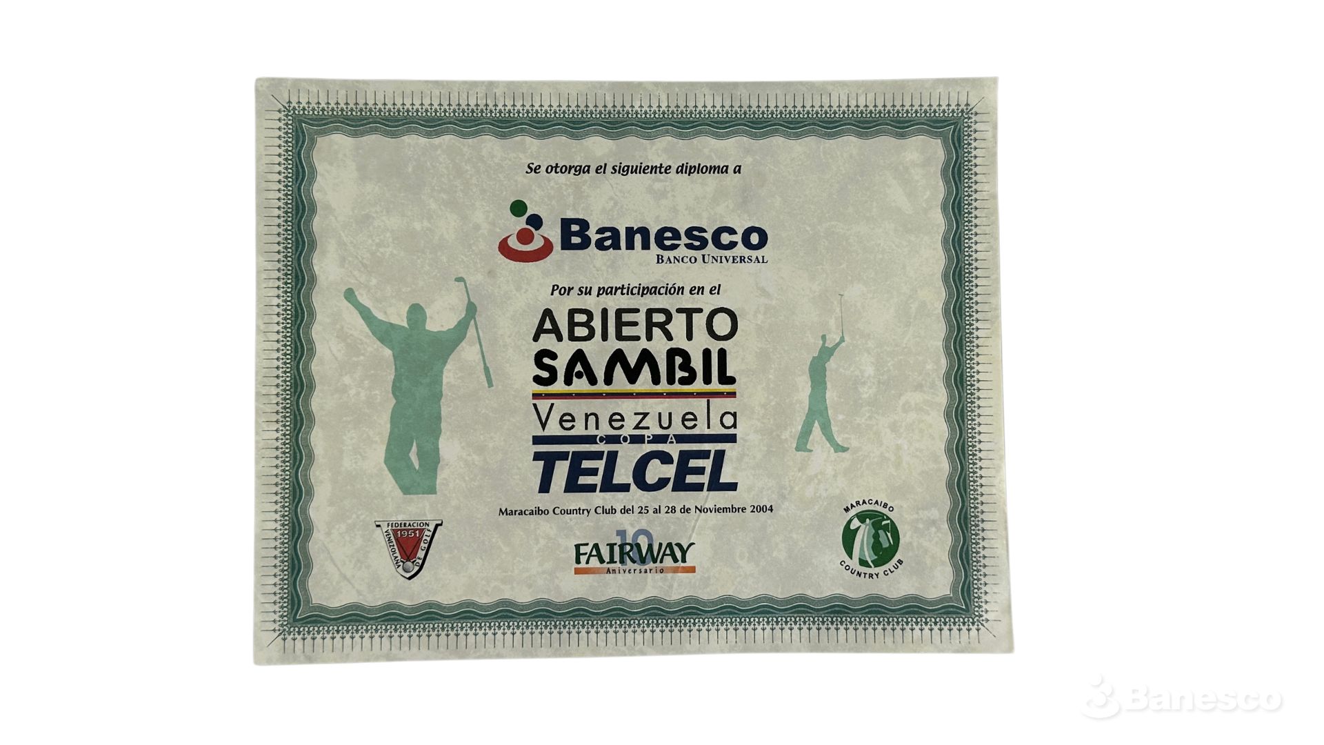 Diploma otorgado a Banesco por su participación en la Copa Telcel en el Maracaibo Country Club del 25 al 28 de noviembre de 2004.