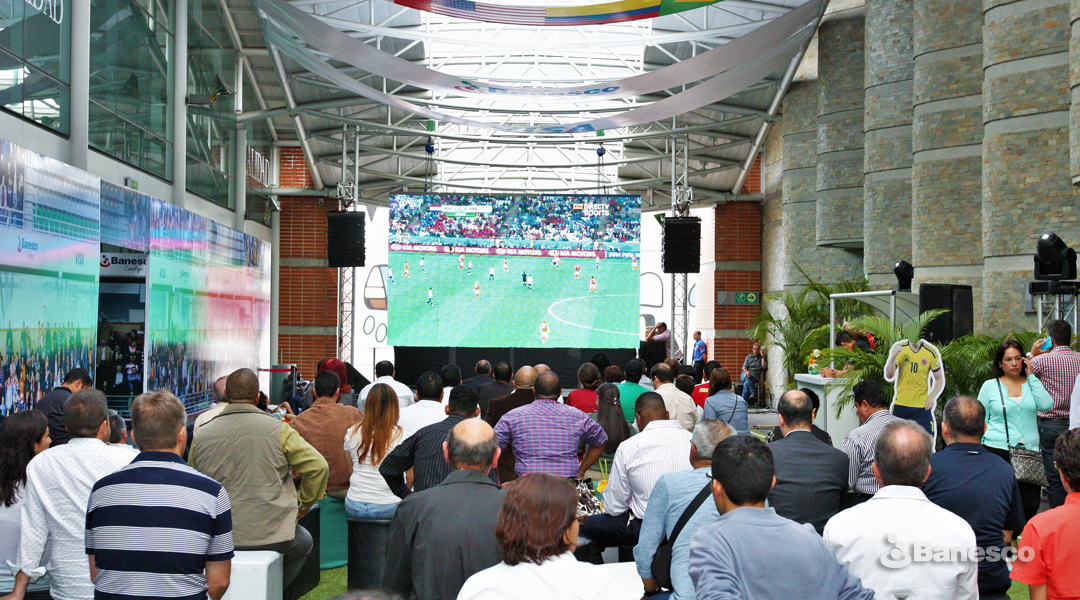 Transmisión del Partido Italia - Costa Rica realizado en los espacios de Ciudad Banesco en el Pasillo Central.