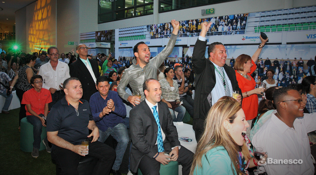 Ciudadanos Banesco disfrutando del partido Italia - Costa Rica en el Pasillo Central ubicado en Ciudad Banesco