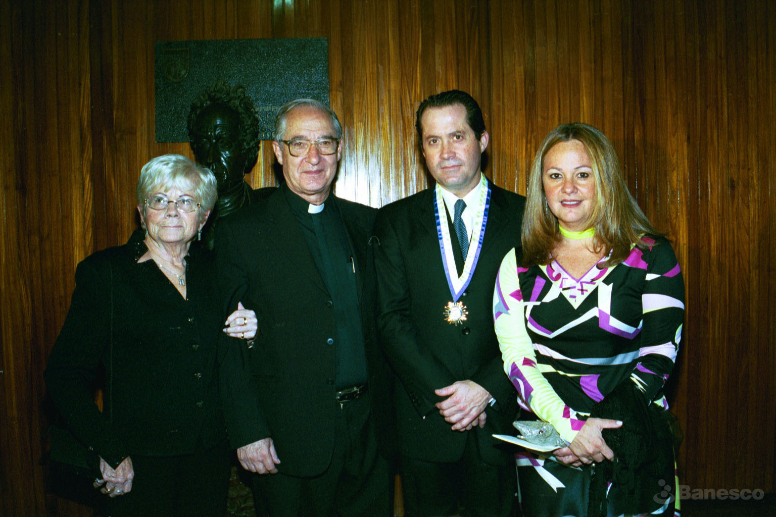 Miembros de la familia de Juan Carlos Escotet Rodríguez junto al Rector de la Universidad Católica Andrés Bello Luis Ugalde, a las afueras del auditorio en el marco del reconocimiento otorgado a Banesco Banco Universal, por su contribución al fortalecimiento institucional de la Asociación Venezolana de Educación Católica (AVEC).