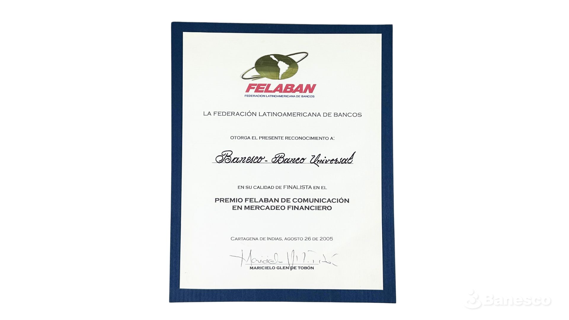 Felaban le otorga a Banesco Banco Universal el reconocimiento en su calidad de finalista en el Premio Felaban de Comunicación en Mercadeo Financiero.