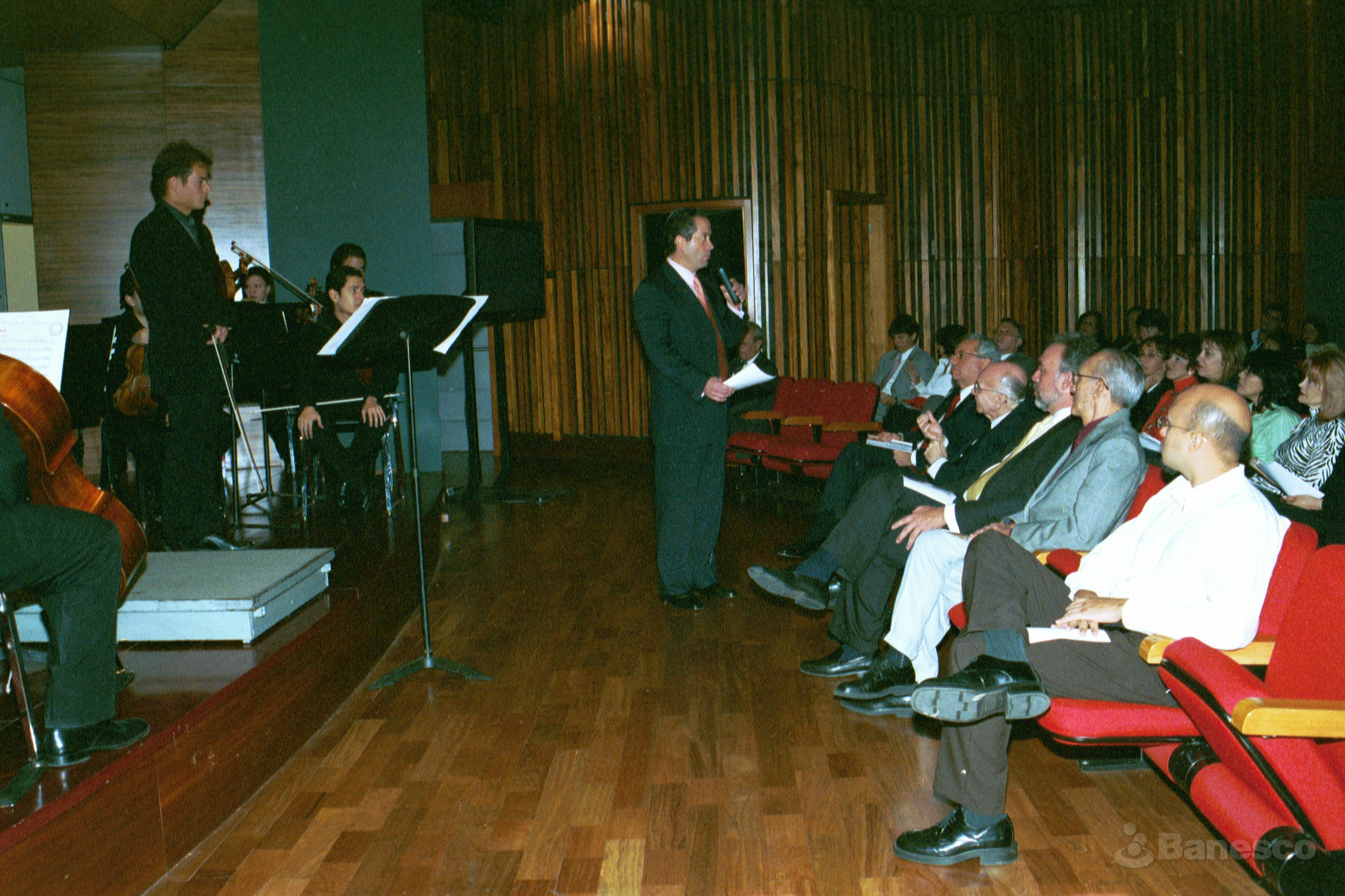 Juan Carlos Escotet dirige unas emotivas palabras a los asistentes del concierto Vivaldi, realizado en el auditorio Fernando Crespo Suñer para celebrar la firma del convenio entre Banesco y la Fundación del Estado para el Sistema Nacional de las Orquestas Juveniles e Infantiles de Venezuela (FESNOJIV).