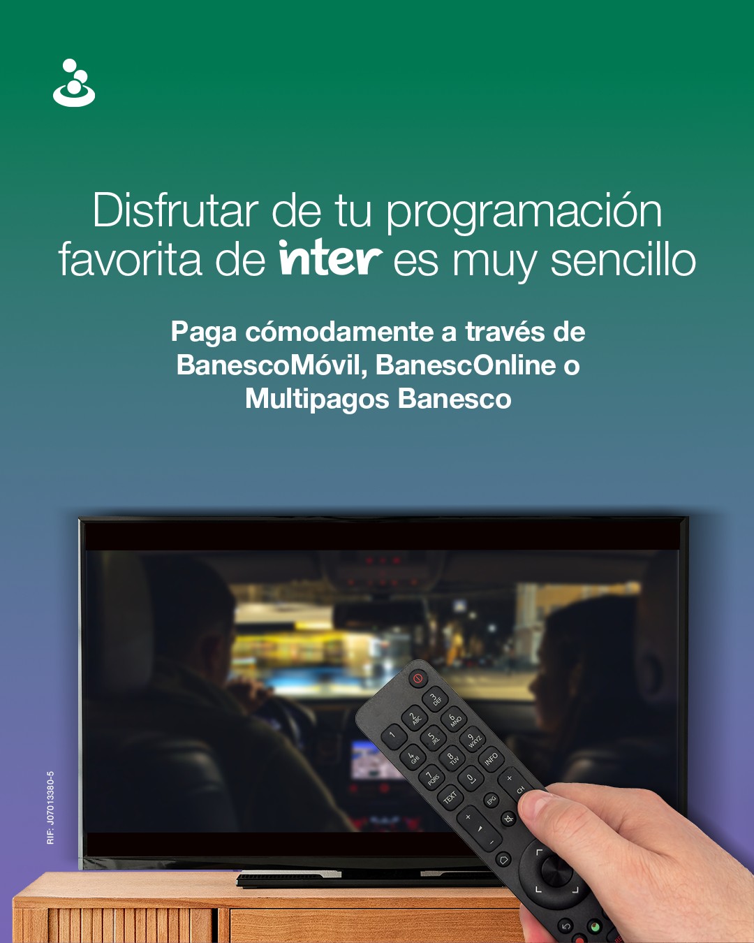 Con Banesco, pagar tu suscripción #Inter es tan sencillo que podrás seguir disfrutando de tus programas y series favoritas sin interrupciones.