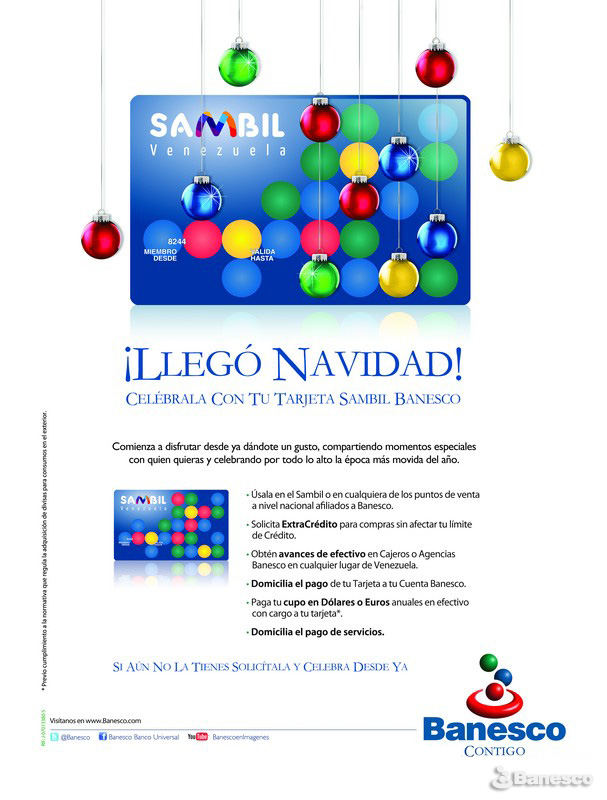 Campaña para promocionar la Tarjeta de Crédito Sambil en navidad.