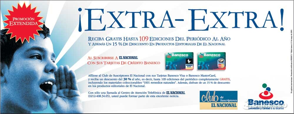 Reciba gratis hasta 109 ediciones del periódico al año y además un 15% de descuento en productos editoriales de El Nacional.