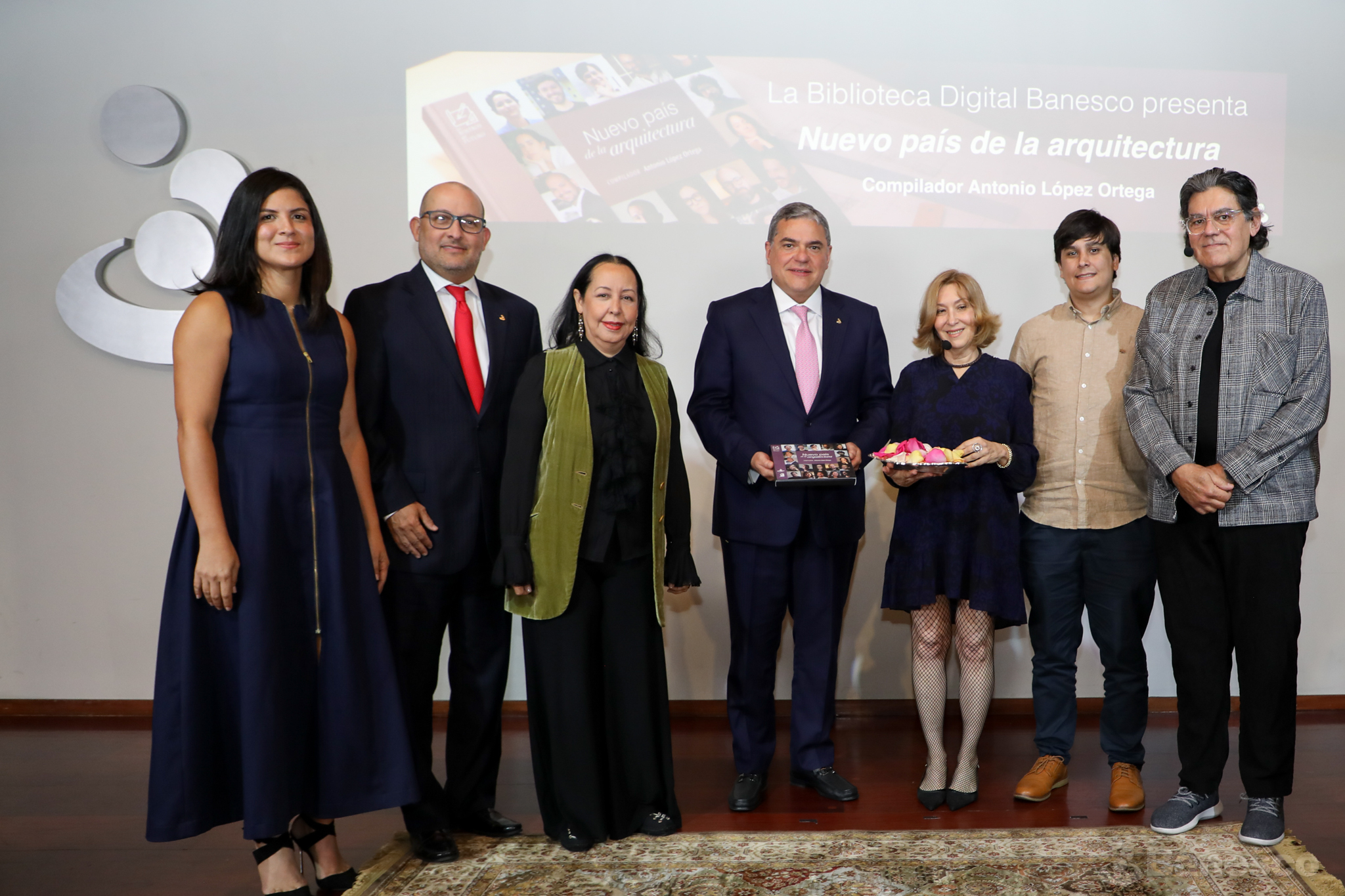 Carlos Eduardo Millán, presidente ejecutivo, Marco Ortega, presidente de la Junta Directiva de Banesco estuvieron presentes durante el bautizo del libro "Nuevo país de la arquitectura" junto a los arquitectos Gildre Aquino, Tomás Caeiro y Enrique Larrañaga, la periodista Maruja Dagnino y la gestora cultural Carmen Julieta Centeno.