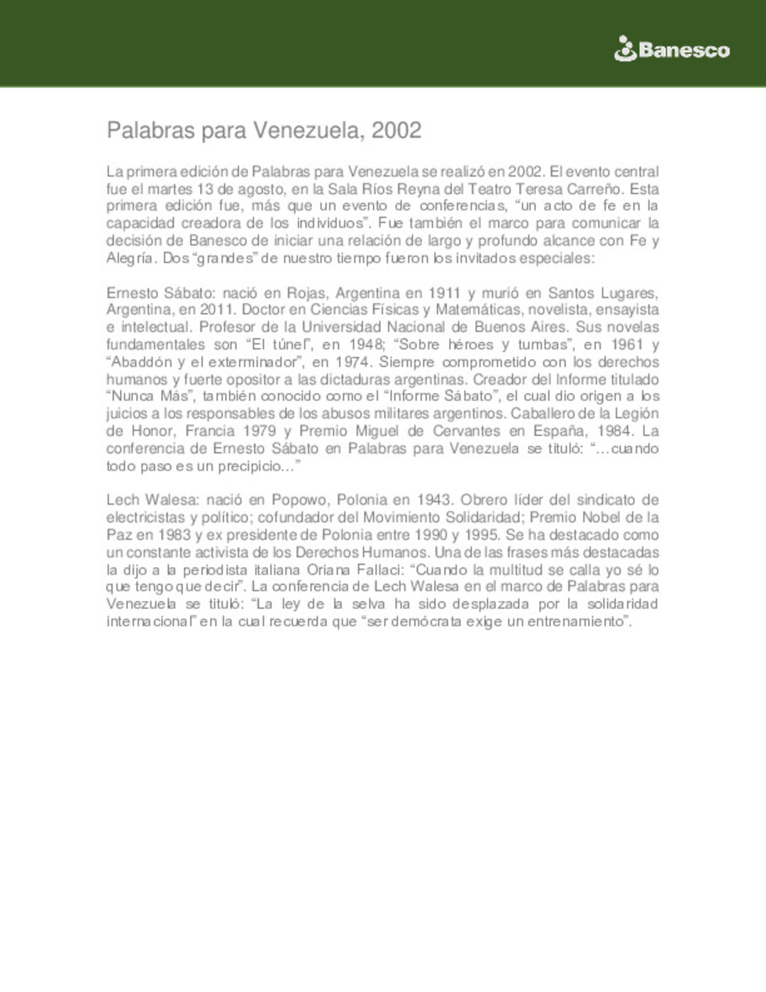 Discurso Ernesto Sabato en Palabras para Venezuela 2002
