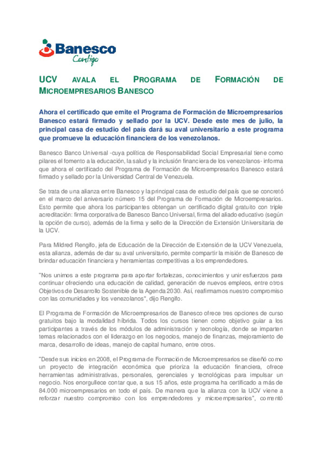 UCV avala el Programa de Formación de Microempresarios Banesco