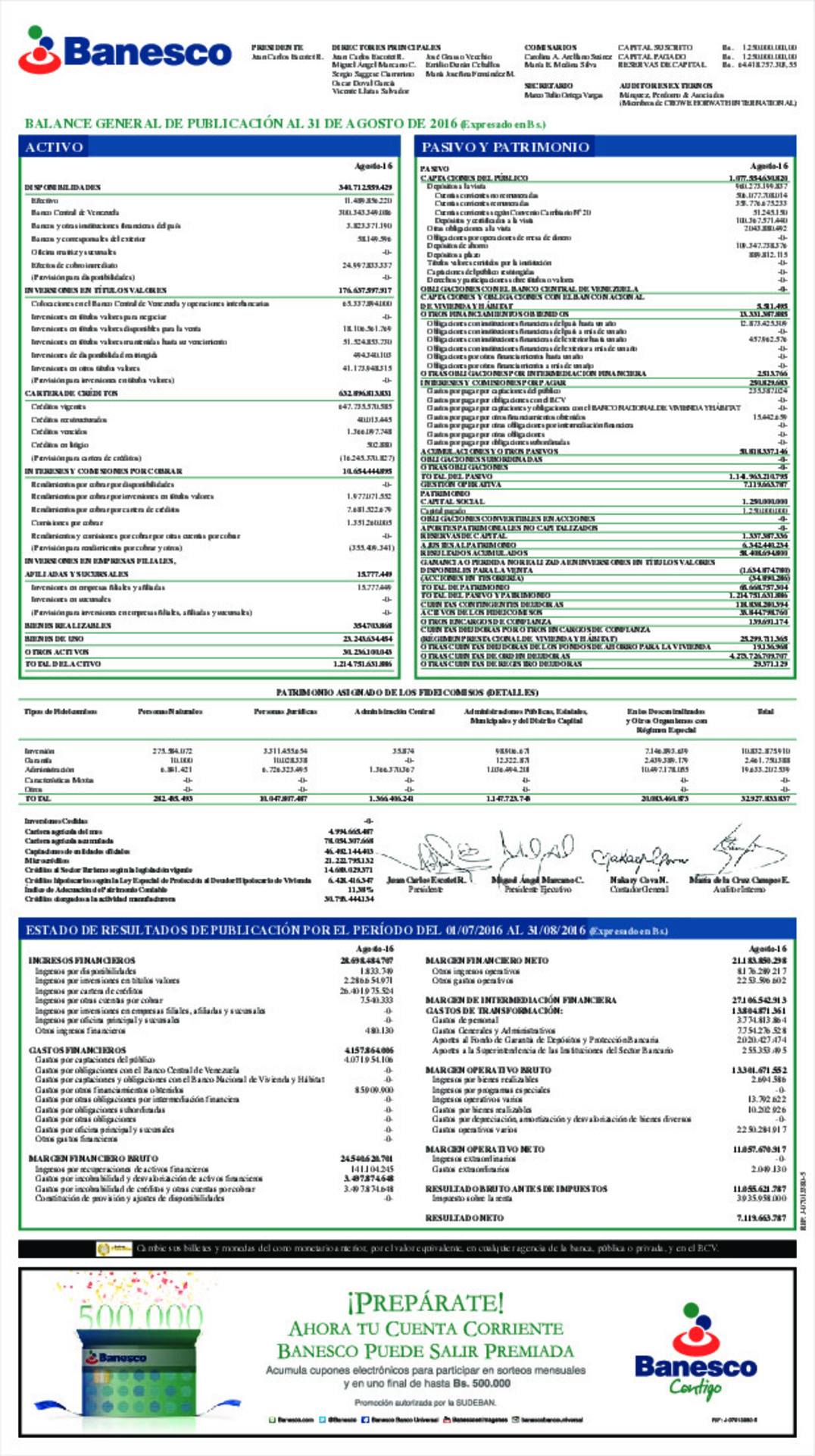 A continuación se presenta el Balance General de Publicación al 31 de agosto 2016.