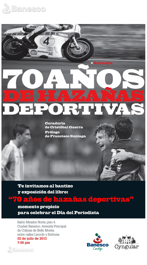 Invitación al bautizo y exposición del libro ''70años de hazañas deportivas''