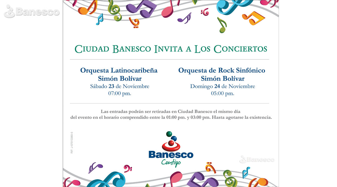 Invitación a la Orquesta Latinocaribeña Simón Bolívar y a la Orquesta de Rock Sinfónico Simón Bolívar, entradas retiradas en Ciudad Banesco.